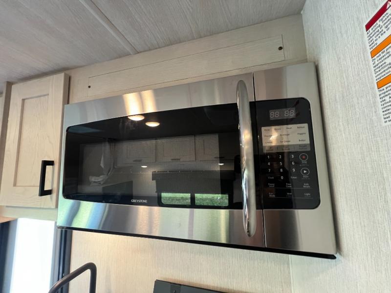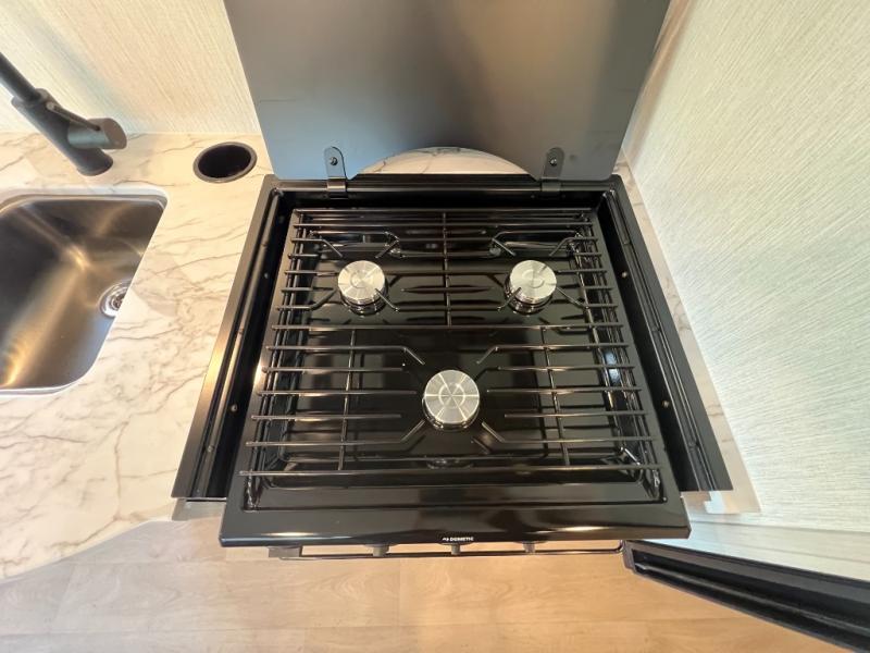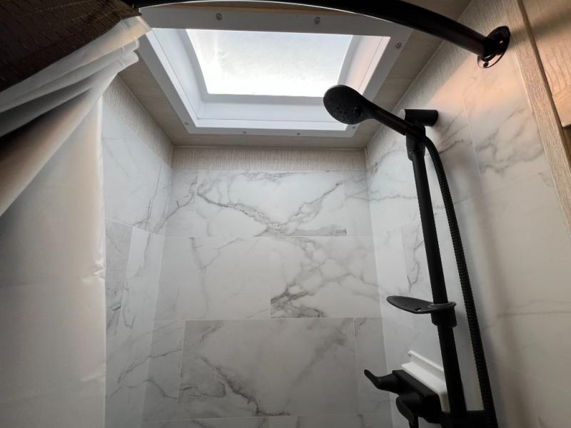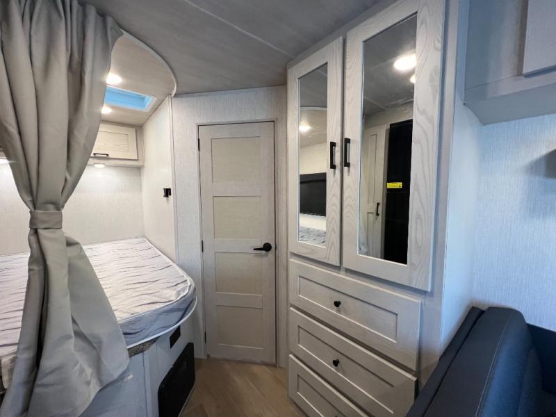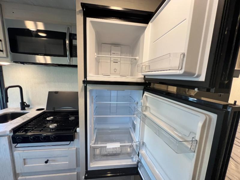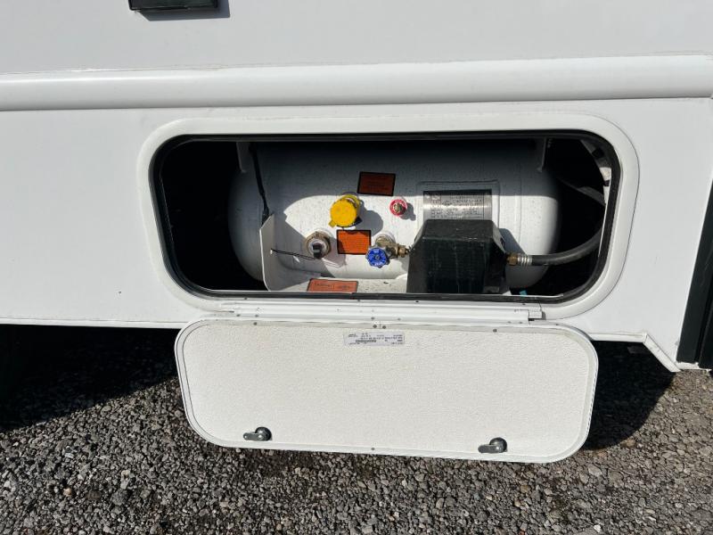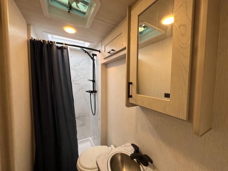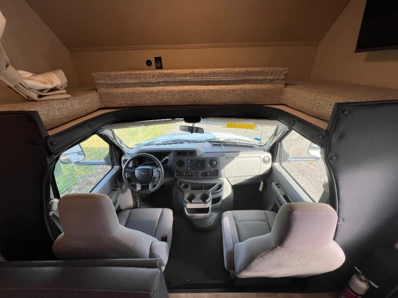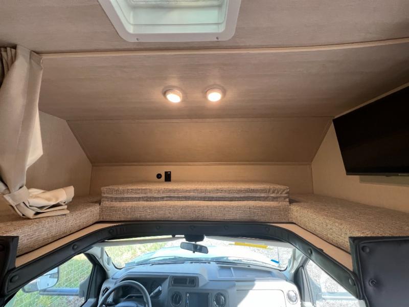 Pick your favorite spot on the map and head there in this motorhome! Get a good night's rest each night on the deluxe innerspring 58" x 78" queen bed, and freshen up in the morning with the shower with a skylight in the rear corner bathroom. Just outside the bathroom is a wardrobe to keep your clothes out of the way too. Grab some eggs from the 10 cu. ft. 12V refrigerator then head to the three burner cooktop to fry them up. You can then enjoy them at the 27" x 42" booth dinette which can also transform into an extra sleeping space. The bunk over cab is also another sleeping space or it can be used for storage!