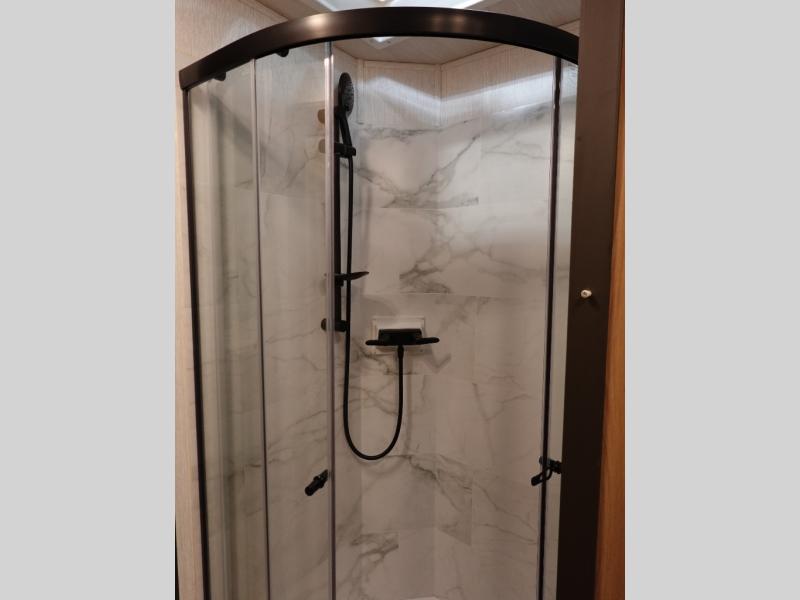The NeXus RV Verrado Super C diesel motorhome provides exceptional space and comfort! The Chevrolet 5500 LT Silverado Series chassis is the basis for this coach with a 350 HP Duramax diesel engine and 700 ft. lb. of torque. Sturdy construction features high strength low alloy lightweight steel cage throughout, a laminated steel framed floor, and seamless gelcoat fiberglass sidewalls. Bring along everything you need with the 15,000 lb. hitch with connector and 7-way plug. You can control everything from the power driver seat with a 9" touch screen stereo with phone mirroring. Watch the scenery go by through the automotive style radius tinted frameless windows. You’re in for a great trip in this NeXus RV Verrado!
