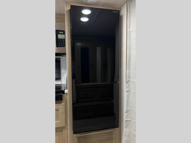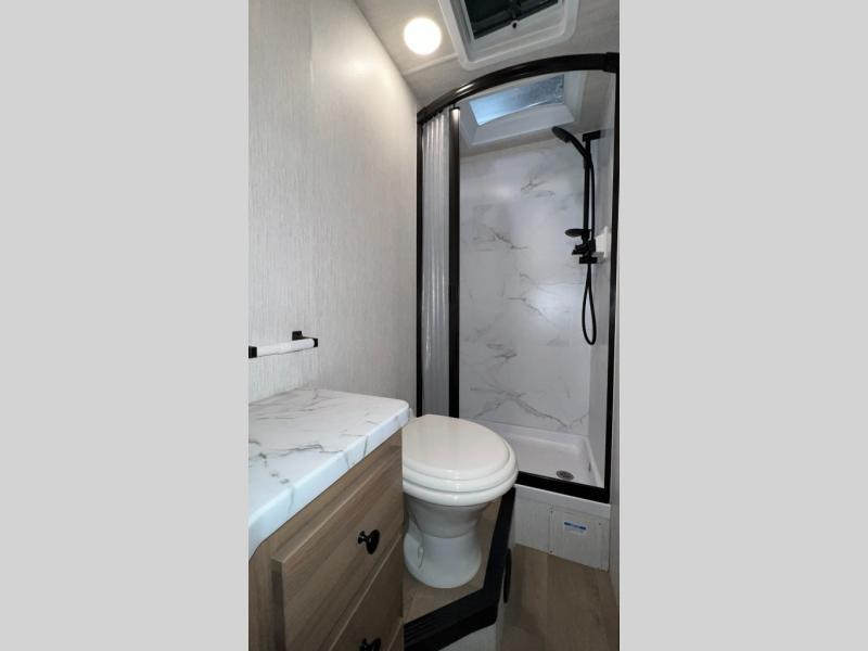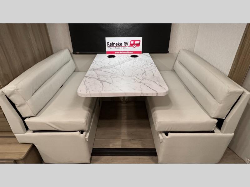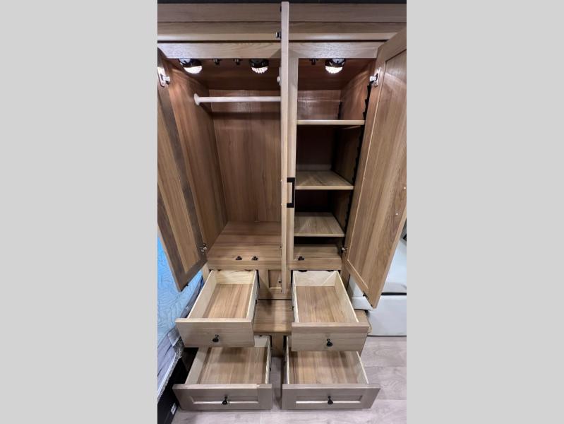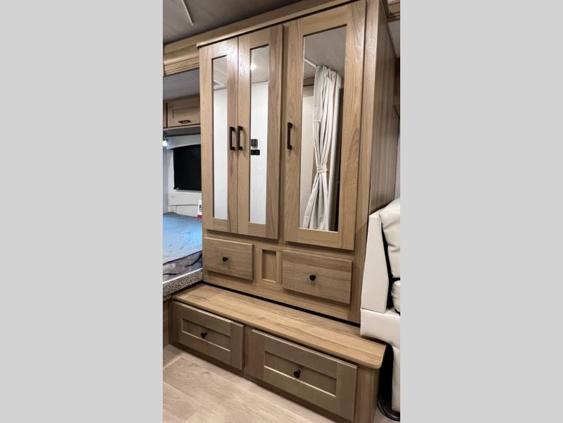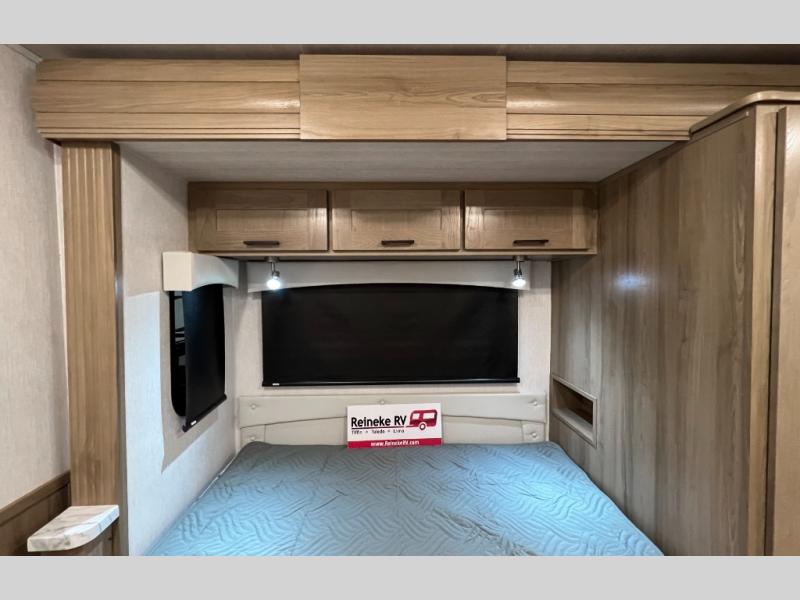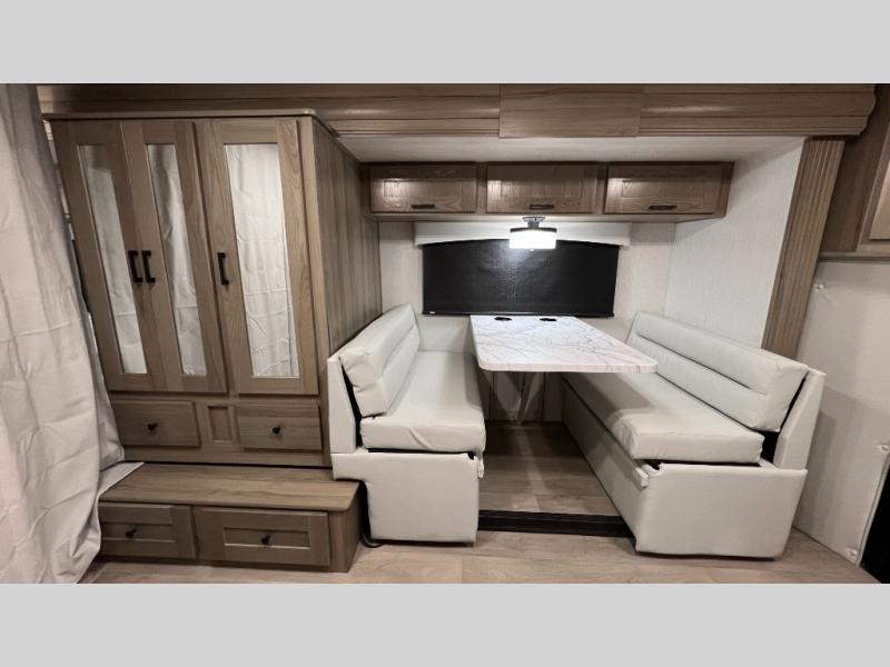 Travel in comfort with your spouse or family to see new places and visit friends in another state. As comfortable as driving will be, the interior offers plenty of space to dine, relax and unwind. The full wall slide makes each area spacious from the front to the back where you will find a hinged RV queen bed and a full bathroom which includes a shower with a flexible hose shower head, a shower skylight and a vinyl door. You will find storage in the wardrobe and overhead cabinets as well as along the exterior. The cab over entertainment center with 40" LED TV will come in handy on those rainy days. A few other features you are sure to appreciate include an NPS 4500 generator when you decide to stop off-grid, the LP quick disconnect, and the 7,500 lb. hitch if you would like to tow your toys and such.