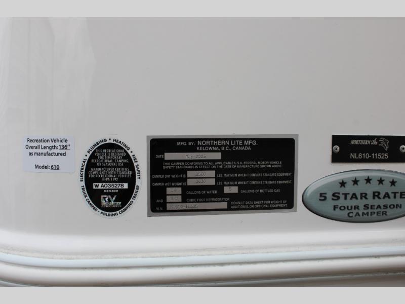 Northern Lite 610 truck camper Std. Model highlights: