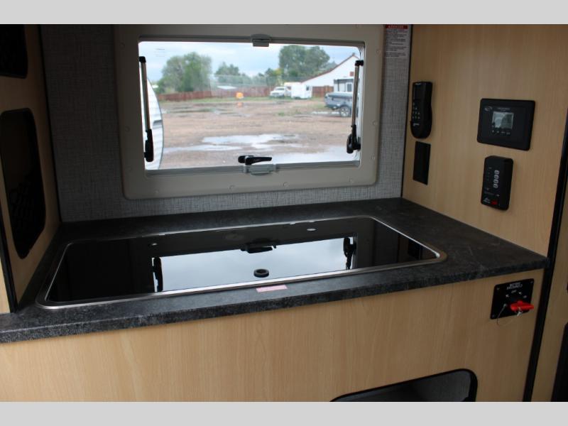 Head for the hills in this half-ton truck camper for three! After driving to your destination all day, you can make lunch on the Suburban two burner cooktop once you set up camp, and there is a glass stove top/sink cover when you need more counter space. The dinette will be perfect for meals times, and you can convert this to a 44" x 52" bed if you have a guest. A Thetford cassette toilet will make nighttime restroom breaks easier than ever, and you'll sleep soundly on the front 54" x 80" mattress.