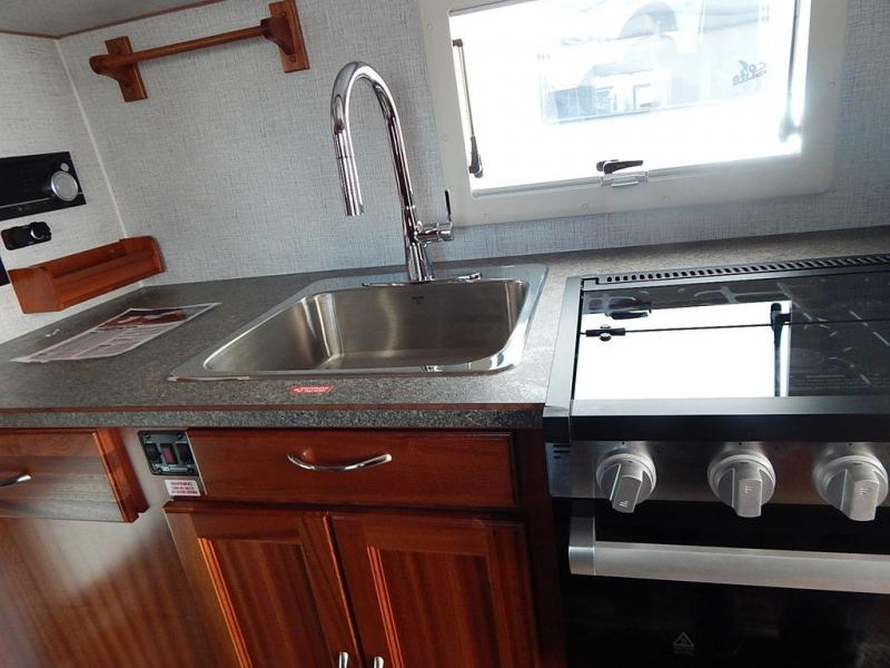 Ultimate features and a high quality construction is what you will find in any one of these Northern Lite Limited Edition truck campers! The raised chrome graphics will turn heads on the highway. The Sapele hardwood interior and premium leatherette seating will have you feeling right at home whether you are going on a fishing trip or full time RV living. A power side awning will protect you rain or shine and you can crank up the tunes with the outside speakers. With a four seasons package, you can camp any time of year and with three 200 watt solar panels you can even go off-grid camping. Don't worry about backing up with the camper either, the backup camera has you covered. Come see all of the other handy features these units offer!