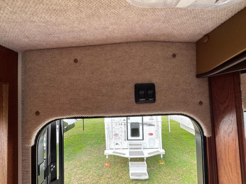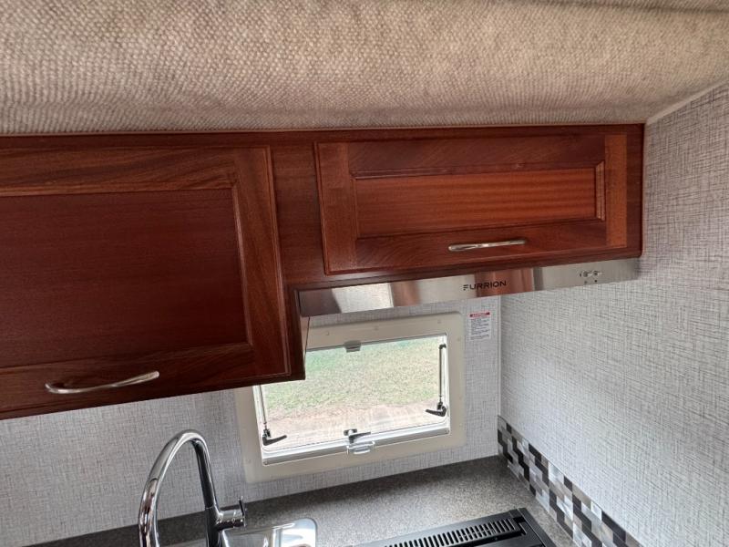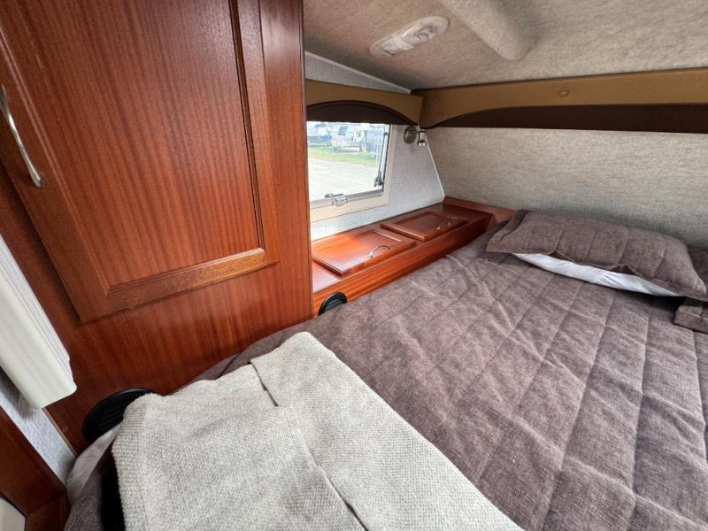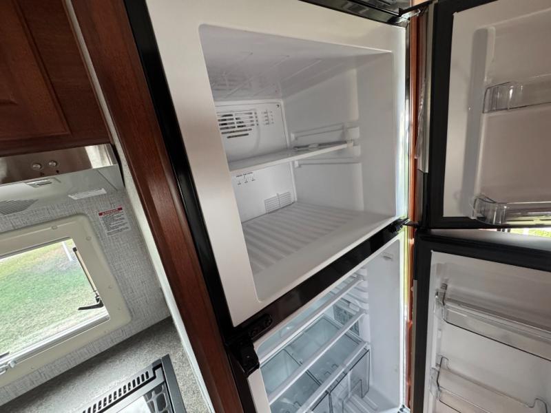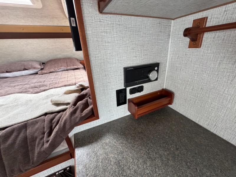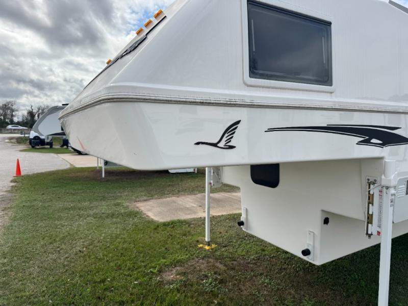 Enjoy a home on top of your long bed truck with this truck camper! Start each morning feeling recharged after sleeping on the front queen bed while your electronics recharge at the 12V USB charging stations. Fill your bellies with fried bacon and eggs cooked on the three burner stove with oven and drink a cold glass of orange juice stored in the 6.3 cu. ft. three way refrigerator. Plus, you can eat your meals at the face-to-face dinette and transform into an extra sleeping space. You can even freshen up each morning in the wet bath. There is plenty of storage throughout with closets and overhead cabinets too!