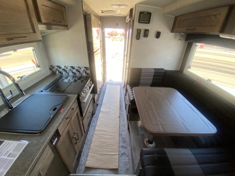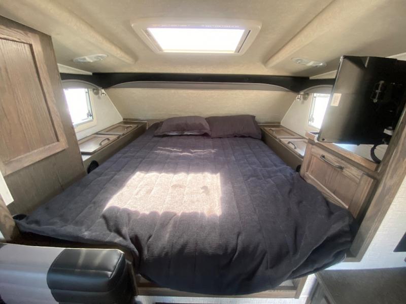 Enjoy a home on top of your long bed truck with this truck camper! Start each morning feeling recharged after sleeping on the front queen bed while your electronics recharge at the 12V USB charging stations. Fill your bellies with fried bacon and eggs cooked on the three burner stove with oven and drink a cold glass of orange juice stored in the 6.3 cu. ft. three way refrigerator. Plus, you can eat your meals at the face-to-face dinette and transform into an extra sleeping space. You can even freshen up each morning in the wet bath. There is plenty of storage throughout with closets and overhead cabinets too!