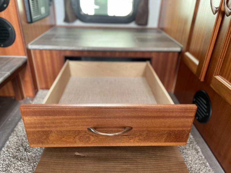 Ultimate features and a high quality construction is what you will find in any one of these Northern Lite Limited Edition truck campers! The raised chrome graphics will turn heads on the highway. The Sapele hardwood interior and premium leatherette seating will have you feeling right at home whether you are going on a fishing trip or full time RV living. A power side awning will protect you rain or shine and you can crank up the tunes with the outside speakers. With a four seasons package, you can camp any time of year and with three 200 watt solar panels you can even go off-grid camping. Don't worry about backing up with the camper either, the backup camera has you covered. Come see all of the other handy features these units offer!