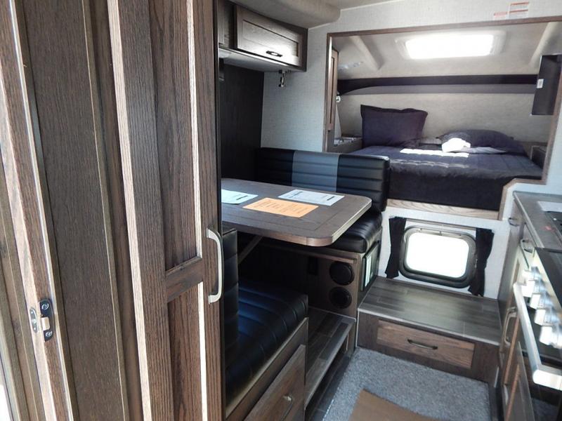 Enjoy a home on top of your long bed truck with this truck camper! Start each morning feeling recharged after sleeping on the front queen bed while your electronics recharge at the 12V USB charging stations. Fill your bellies with fried bacon and eggs cooked on the three burner stove with oven and drink a cold glass of orange juice stored in the 6.3 cu. ft. two way refrigerator. Plus, you can eat your meals at the face-to-face dinette and transform into an extra sleeping space. You can even freshen up each morning in the wet bath. There is plenty of storage throughout with closets and overhead cabinets too!