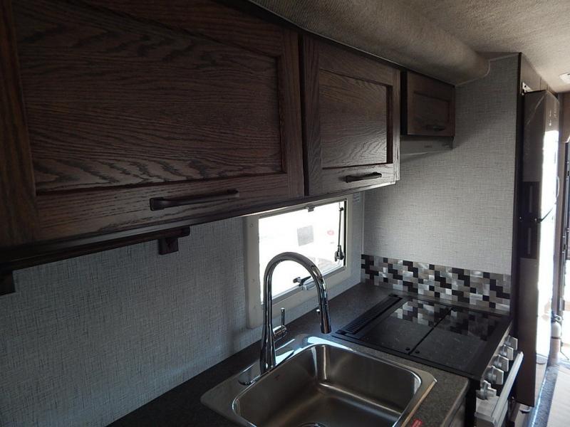 Enjoy a home on top of your long bed truck with this truck camper! Start each morning feeling recharged after sleeping on the front queen bed while your electronics recharge at the 12V USB charging stations. Fill your bellies with fried bacon and eggs cooked on the three burner stove with oven and drink a cold glass of orange juice stored in the 8 cu ft 12-Volt Refrigerator. Plus, you can eat your meals at the face-to-face dinette and transform into an extra sleeping space. You can even freshen up each morning in the dry bath with extra room, a divider that separates the shower from the toilet, and a built-in shower seat. There is plenty of storage throughout with closets and overhead cabinets too!