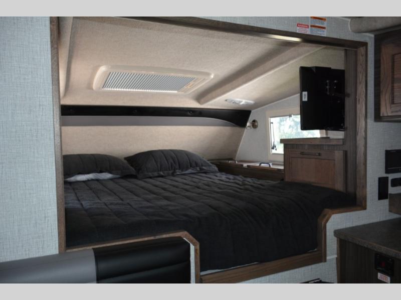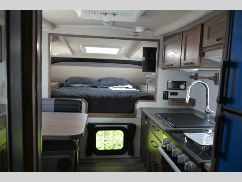 If you have a short bed truck then you need this truck camper for your next adventure! Start each morning feeling recharged after sleeping on the front queen bed while your electronics recharge at the 12V USB charging stations. Fill your bellies with fried bacon and eggs cooked on the three burner stove with oven and drink a cold glass of orange juice stored in the 6.3 cu. ft. three way refrigerator. Plus, you can eat your meals at the face-to-face dinette and transform into an extra sleeping space. You can even freshen up each morning in the dry bath with extra room, a divider that separates the shower from the toilet, and a built-in shower seat. There is plenty of storage throughout with closets and overhead cabinets too!