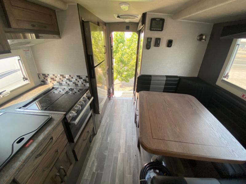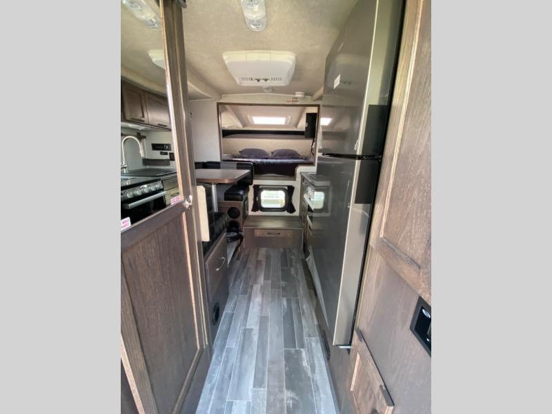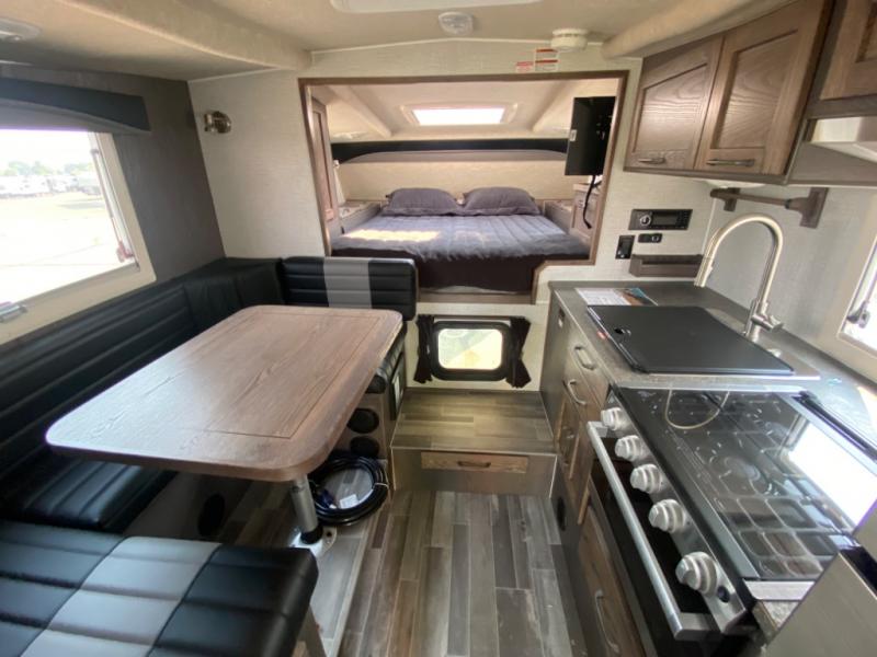 This truck camper is perfect for your long bed truck! Start each morning feeling recharged after sleeping on the front queen bed while your electronics recharge at the 12V USB charging stations. Fill your bellies with fried bacon and eggs cooked on the three burner stove with oven and drink a cold glass of orange juice stored in the refrigerator. Plus, you can eat your meals at the face-to-face dinette and transform into an extra sleeping space. You can even freshen up each morning in the wet bath. There is plenty of storage throughout with closets and overhead cabinets too!
