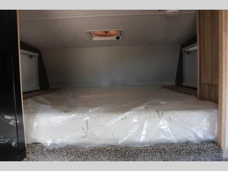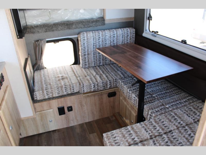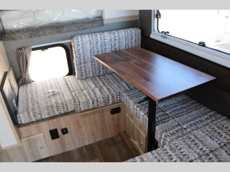 This truck camper is perfect for two people wanting to hit the open road with a home on the back of their 1/2 ton or larger full size short bed (6' 4" to 6' 10") or long bed truck (8')! Start each morning feeling clean and well rested after sleeping on the front cabover queen bed and showering in the wet bath. There is storage on either side of the bed, a TV stand at the foot of the bed on one side, and a wardrobe on the other side, plus a second wardrobe next to the two burner stove with high output burner and sink. Once you have prepared a delicious home cooked meal, you can enjoy it at the U-shaped dinette and even transform it into an extra sleeping space!