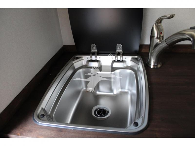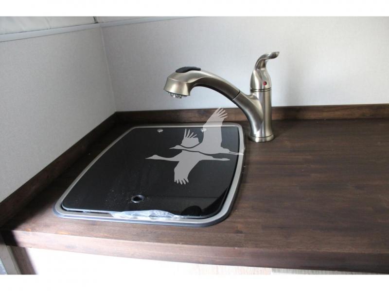 UPGRADED WATER SYSTEM: 17 Gallon Fresh Water Capacity Lockable Fresh Water Fill Winterization Bypass Kit City Water Inlet Glass Top Sink (8" Deep) w/Single Lever Faucet & Pull -Out Sprayer