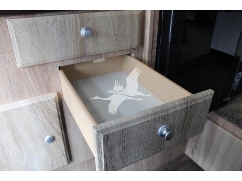 UPGRADED INSULATION PACKAGE: "Sub Zero" Insulated Vinyl Enclosure Insulated Dinette Window w/Screen & Shade Hand Fitted Block Foam Insulation in Side Walls & Floor Laminated Roof Construction with Insulating Foam Layer Fiberglass Exterior with Graphics