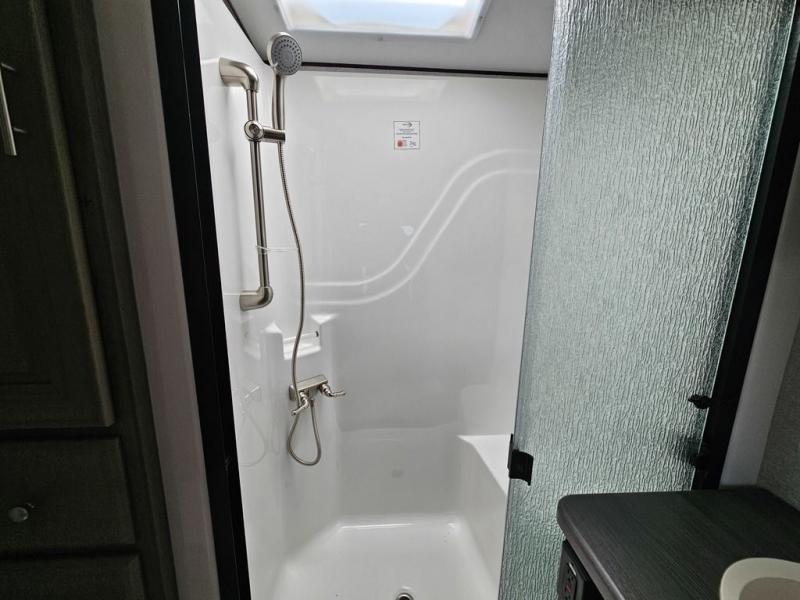 With any Arctic Fox Rapid fifth wheel by Northwood, you will enjoy camping in all conditions thanks to the four seasons insulation! There is also a Northwood built Ironhorse chassis, frameless thermal pane windows, and laminated multi-layered substrate in the walls and floor for added durability. There are many exterior conveniences, such as an exterior shower, 12V LED awning with adjustable pitch, HD ladder, exterior convenience center and more. Head inside to find solid surface kitchen countertops, a NW TruRest mattress, USB charging ports, and an interior command center to easily access your units functions.