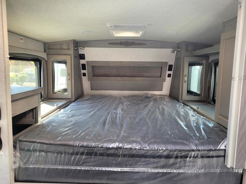 Whether you camp, hunt or even fish once you have arrived at your destination, this truck camper provides plenty of comforts and conveniences so you can choose your fun. The rear entry places you inside to find a wet bath along one side and a booth dinette slide with fridge on the other. You can dine and even sleep here once converted into a 38" x 68" sleeping area. And there is an optional bunk above. The cook will love the large stainless steel sink, the pantry and the three burner cooktop when making meals inside. The 58" x 80" NW TruRest queen mattress with bedspread will allow you to get a good night's rest. And you will find plenty of storage in the three wardrobes and your dirty clothes can go into one of the two hampers.