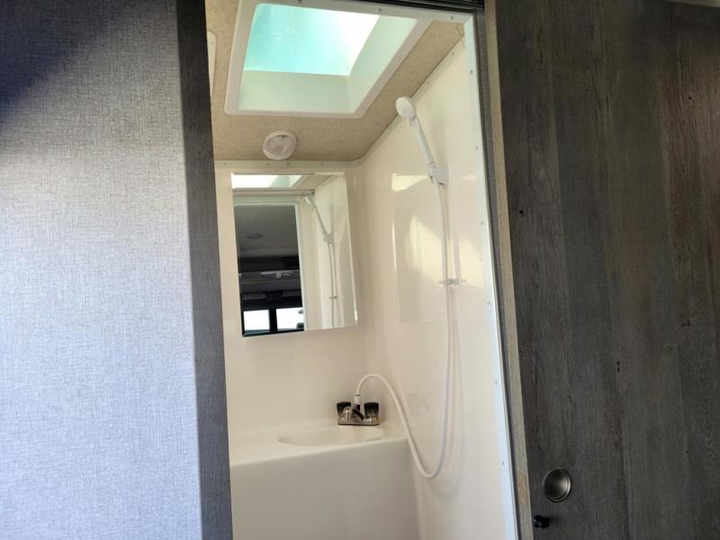 With any Arctic Fox truck camper by Northwood, there is a fully welded thick wall aluminum tube frame with solid core anchor blocking that gives substantial strength at the main connection points, and a heavy duty basement floor frame with joists that support the heated holding tanks under the basement. These 4 Season all weather campers allow you to camp where ever and whenever you decide to set up camp. The electric jacks with 6-function remote makes setting up easy, and the exterior shower allows you to keep the dirt outside. Inside you will find a cathedral arched ceiling for a spacious interior, solid wood cabinetry, a Dayliter kitchen skylight with shade to choose when you want more natural lighting inside, a porcelain, foot-pedal toilet and bath skylight, and roller bearing drawer guides.