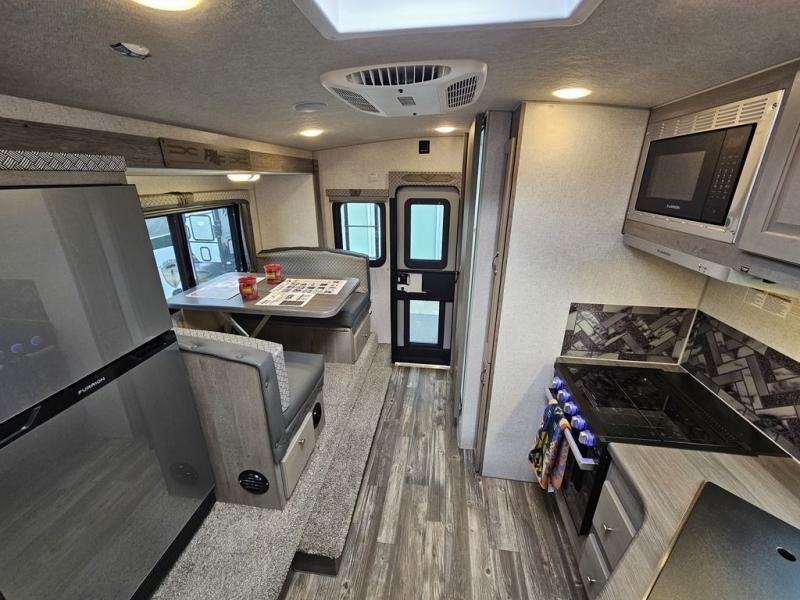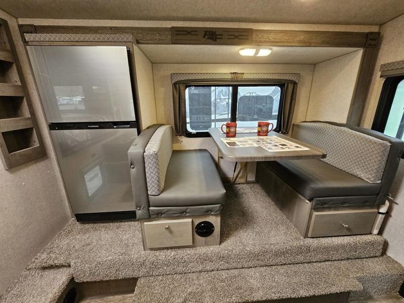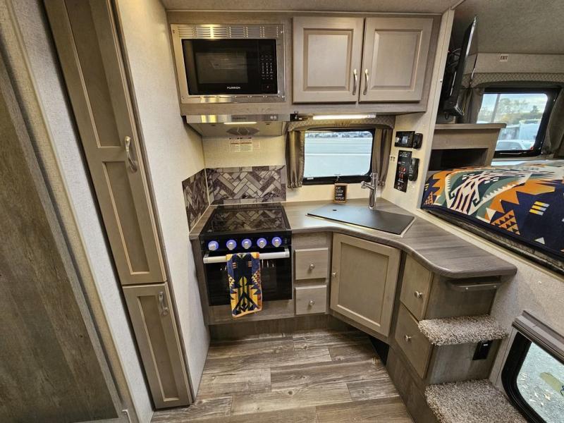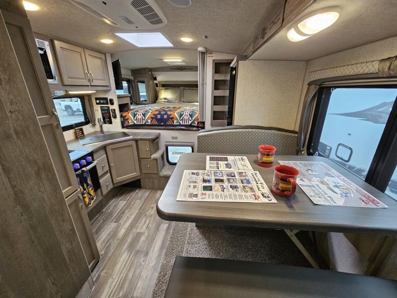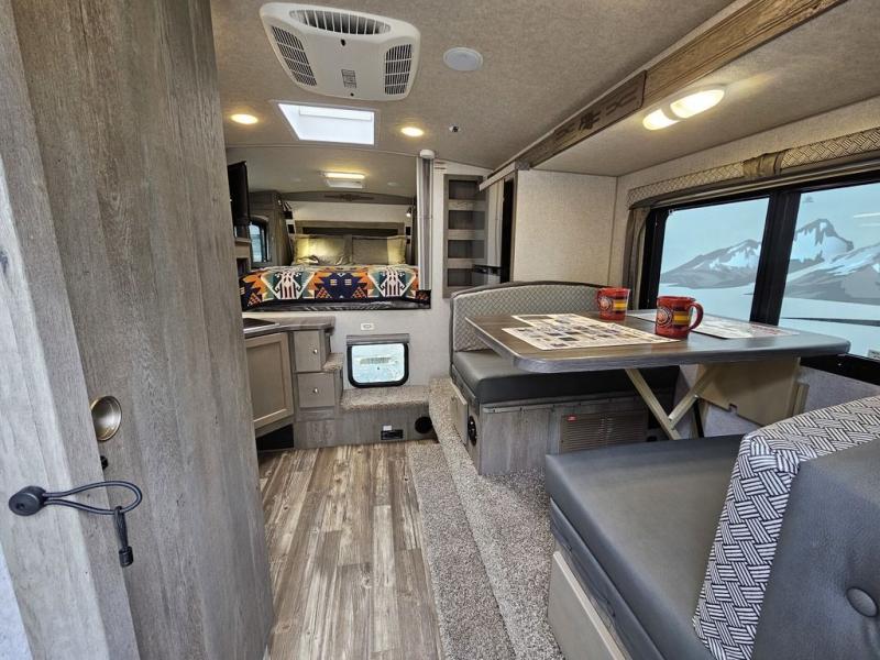 Whether you camp, hunt or even fish once you have arrived at your destination, this truck camper provides plenty of comforts and conveniences so you can choose your fun. The rear entry places you inside to find a wet bath along one side and a booth dinette slide with fridge on the other. You can dine and even sleep here once converted into a 38" x 68" sleeping area. And there is an optional bunk above. The cook will love the large stainless steel sink, the pantry and the three burner cooktop when making meals inside. The 58" x 80" NW TruRest queen mattress with bedspread will allow you to get a good night's rest. And you will find plenty of storage in the three wardrobes and your dirty clothes can go into one of the two hampers.