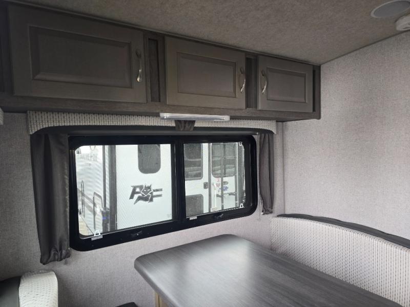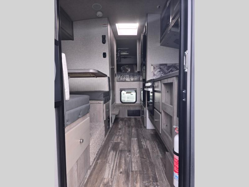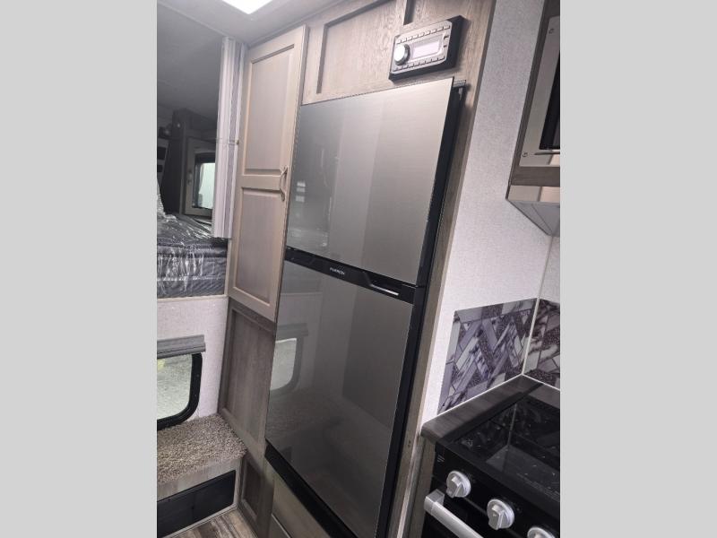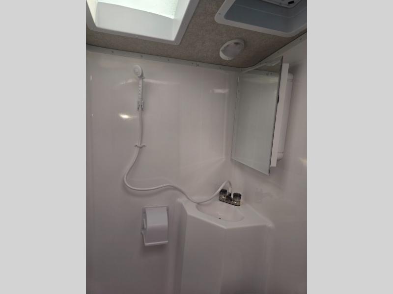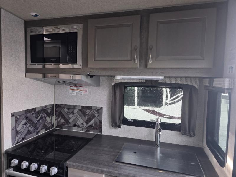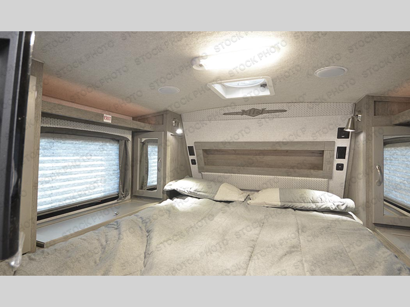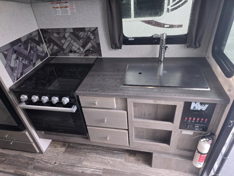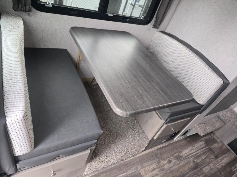 Looking for an easy to setup camper that offers sleeping space for three to four? Once at your destination, there is no slide to worry about, just get dressed and start exploring to return to inside comforts or relax outdoors under the rear electric awning with LED lights before making dinner. The cook will love the three burner cooktop and microwave to make meals, plus an 8 cu. ft. 12V refrigerator for food storage. You can take turns getting cleaned up in the wet bath which is centrally located for convenience. The front NW TruRest queen mattress gives you sleeping for two with plenty of storage for clothing and two hampers for dirty clothes, and the dinette converts to a 38" x 68" sleeping area.