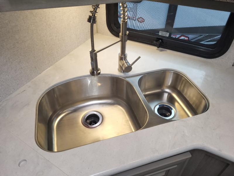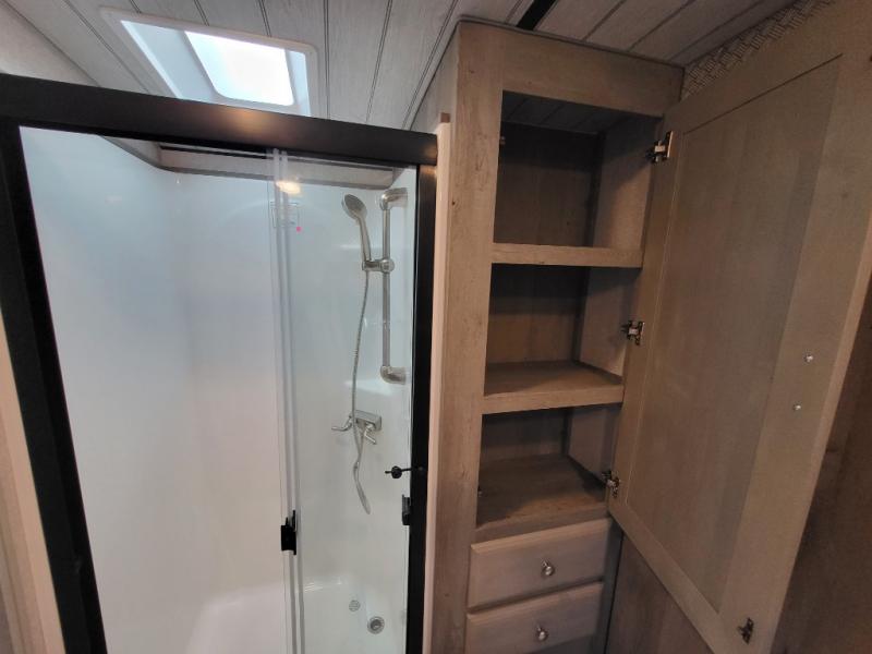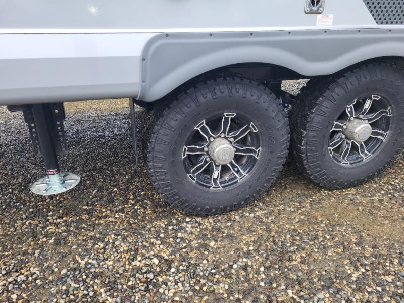 With any Arctic Fox Edge travel trailer by Northwood, you will find solid construction materials, including a fully welded, thick-wall aluminum frame, Corona treated fiberglass, and four seasons insulation with R-18 in the ceiling. There is also an aerodynamic one-piece front cap with BackRoad Armor for added protection as you travel to the campground. An exterior shower will come in handy when washing off hiking gear and the Slam Latch luggage doors will make it easy to pack up when it's time to go home. The Artic Fox Edge also includes many interior comforts, such as solid surface kitchen and bath countertops, cathedral arched ceilings, a Northwest TruRest mattress, and slow rise night shades for added privacy.