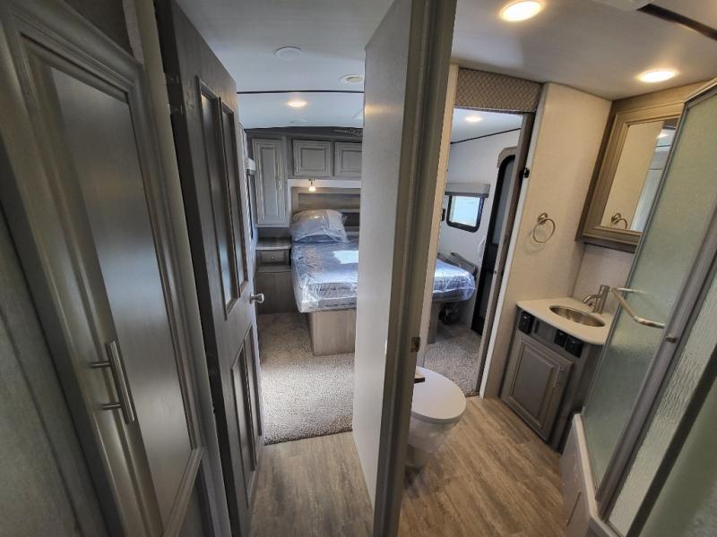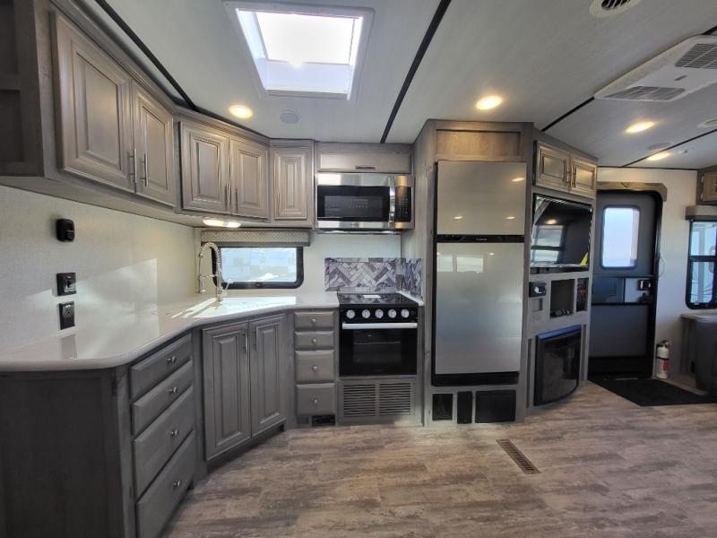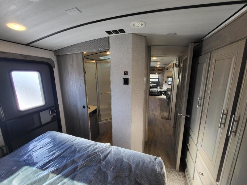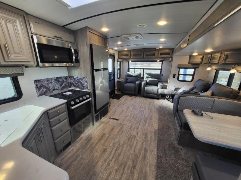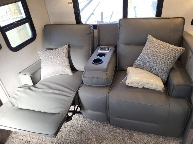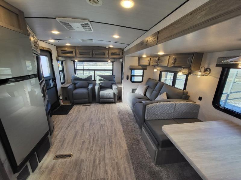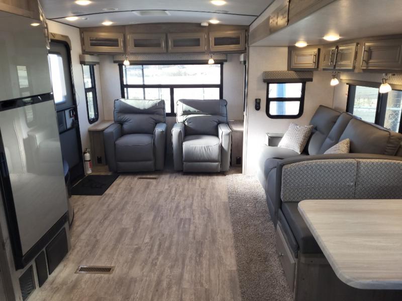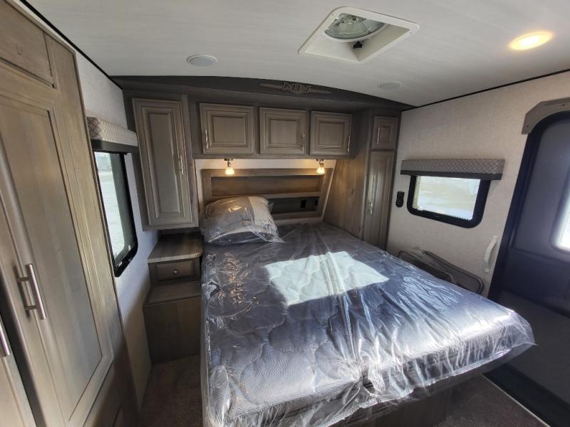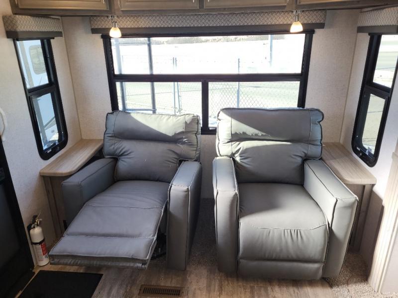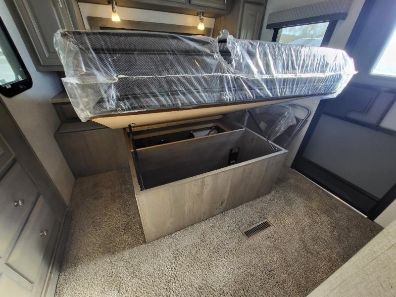 With a master suite up front and a set of lounge chairs in the back, this Arctic Fox North Fork travel trailer gives you comfortable accommodations so that you can enjoy resting after long days of activities. You can enter the front or back of this trailer because of the two entry doors that have been included, and with a pantry, linen closet and wardrobe slide, you'll have enough space to store all of your various belongings.