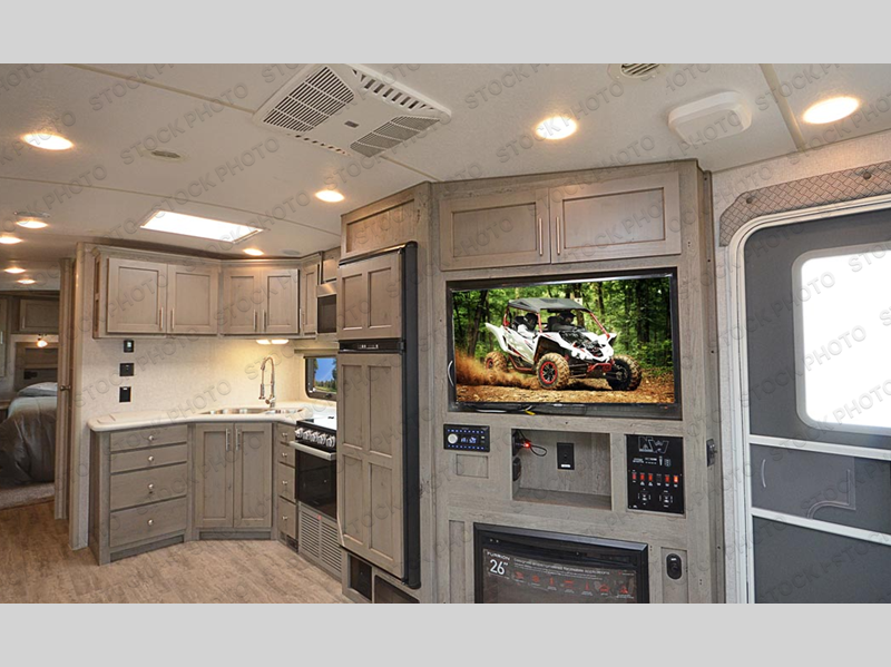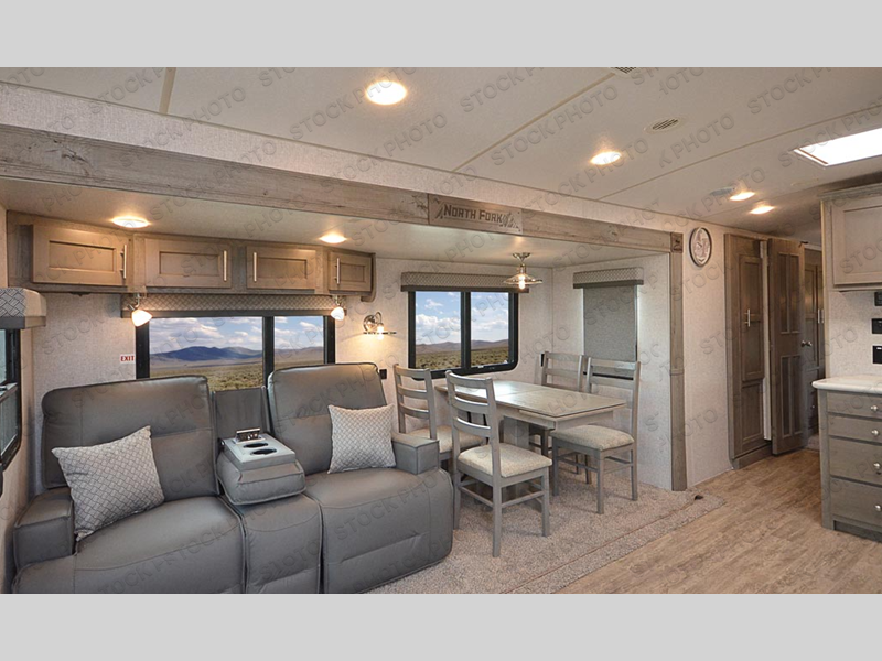 With a master suite up front and a set of lounge chairs in the back, this Arctic Fox North Fork travel trailer gives you comfortable accommodations so that you can enjoy resting after long days of activities. You can enter the front or back of this trailer because of the two entry doors that have been included, and with a pantry, linen closet and wardrobe slide, you'll have enough space to store all of your various belongings.