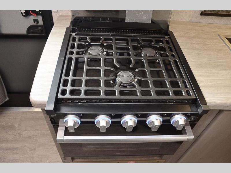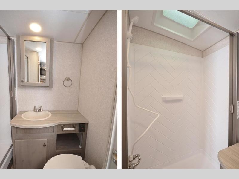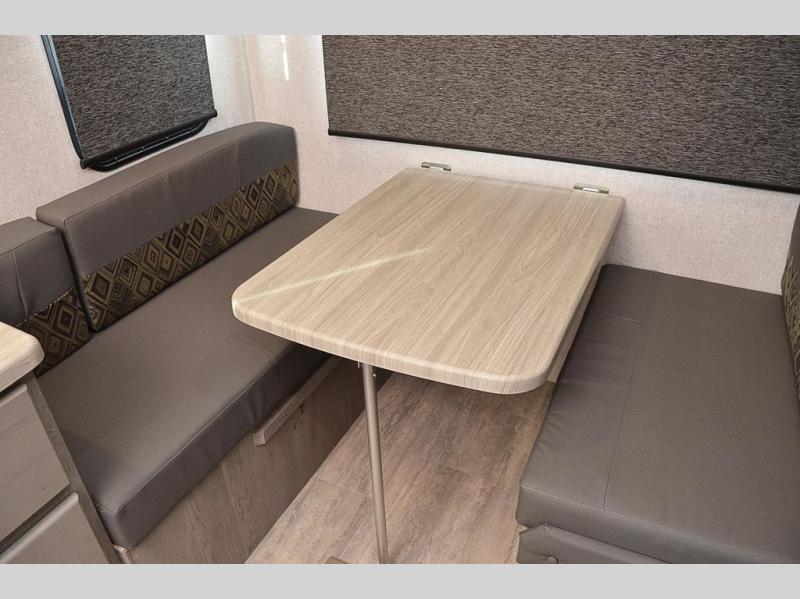 This is the perfect couples trailer for adventure and comfort during any season. From the front queen-size bed for a good night's sleep to the rear booth dinette that converts to sleeping space for one to two at night, you will be able to sleep above ground at any campsite or RV park. The next morning, whip up breakfast on the three burner range, and get cleaned up in the full bathroom in the shower. There is also plenty of counter space, a 10 cu. ft. 12V refrigerator for food, plus a wardrobe by the refrigerator that can be used for clothes or dry goods!