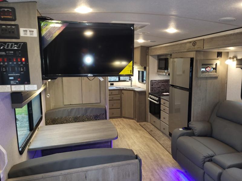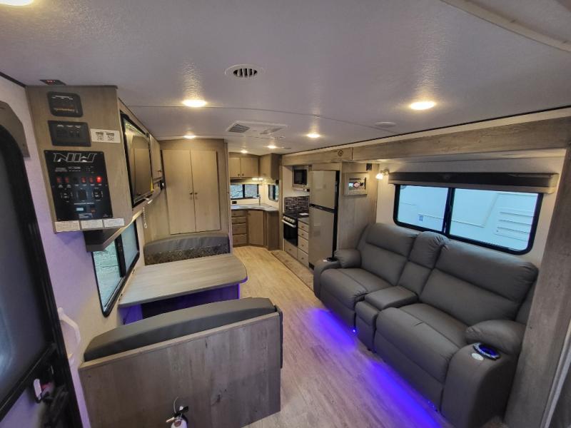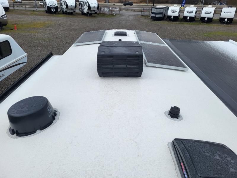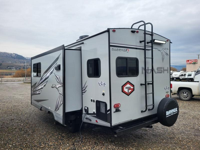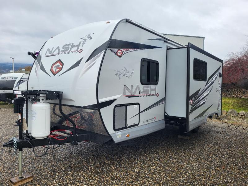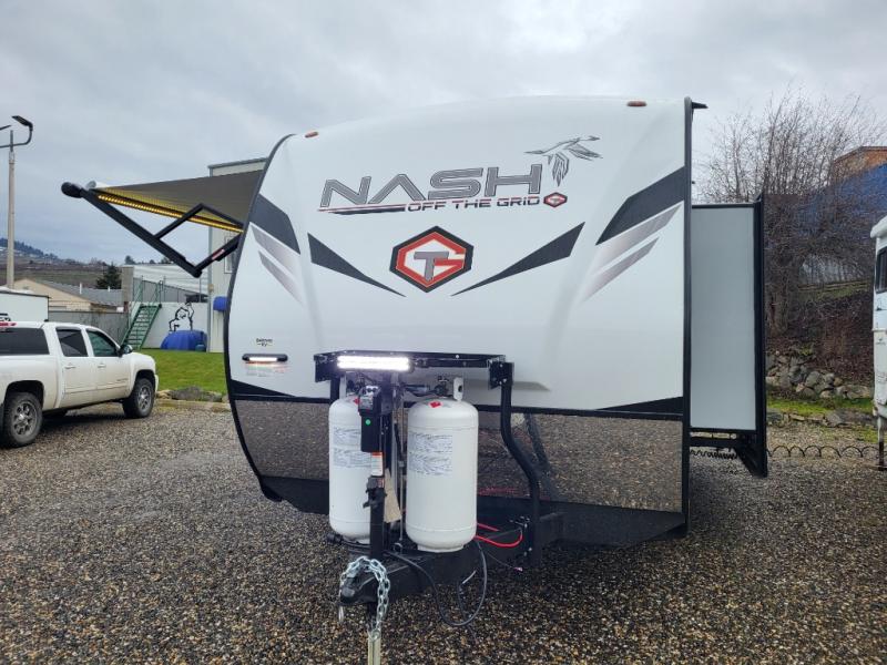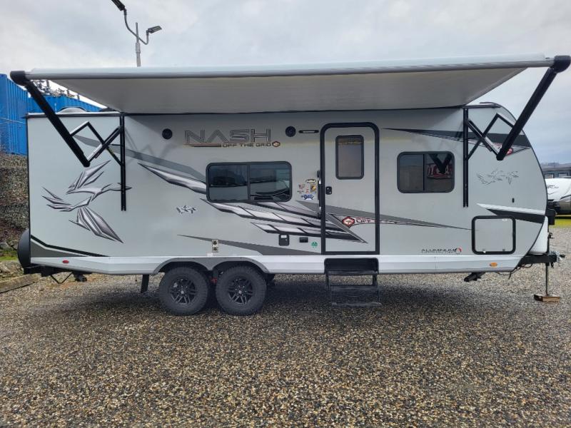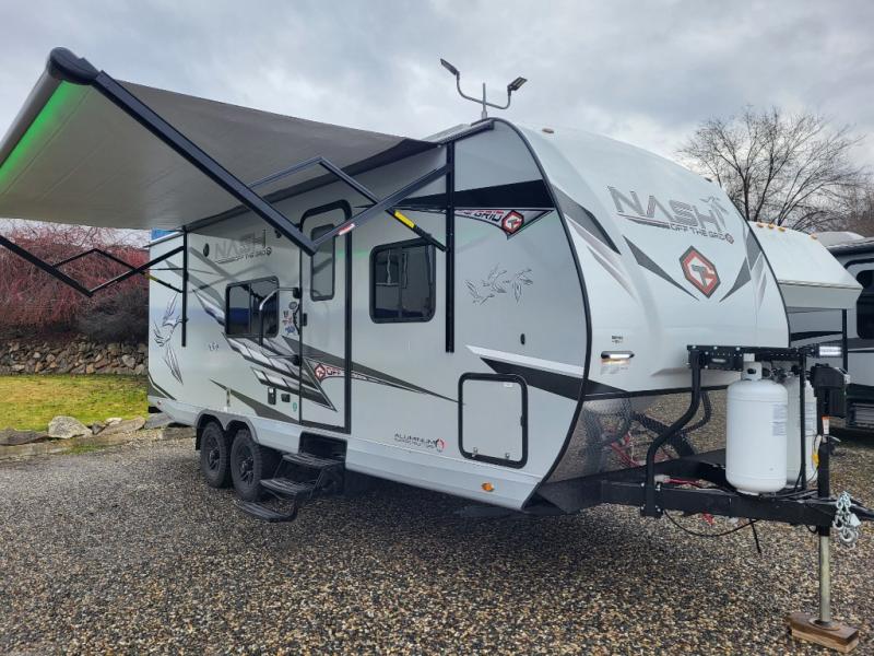 With any Nash travel trailer by Northwood, you can be sure you're getting a durable RV made to last thanks to the fully welded, thick-wall aluminum frame construction and Northwood built Ironhorse chassis. There are also thermal pane windows, Corona treated fiberglass, and all-conditions/four seasons insulation so you can camp year around! A pass through storage with an LED light will let you easily store camp gear and the SolX 4 - 400 Watt Solar Package will provide some off-grid capabilities. If you're wanting to go even more off-grid, just choose the optional Off The Grid Package! Head inside to enjoy the cathedral arched ceiling, along with slow rise night shades, a Northwood TruRest mattress, an AM/FM stereo with Bluetooth, and many more at-home comforts.
