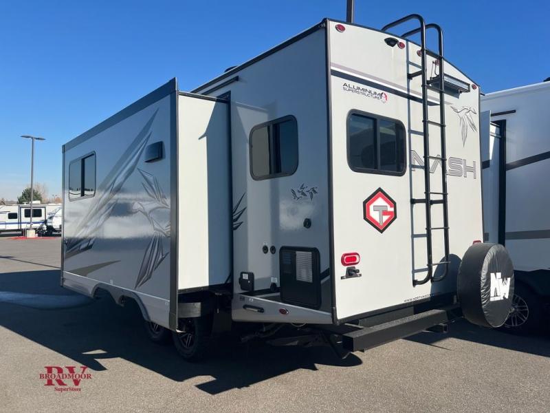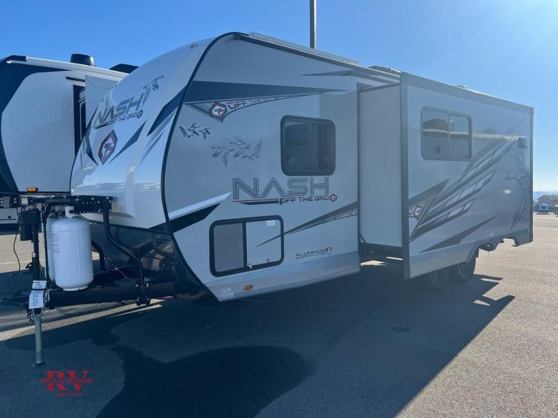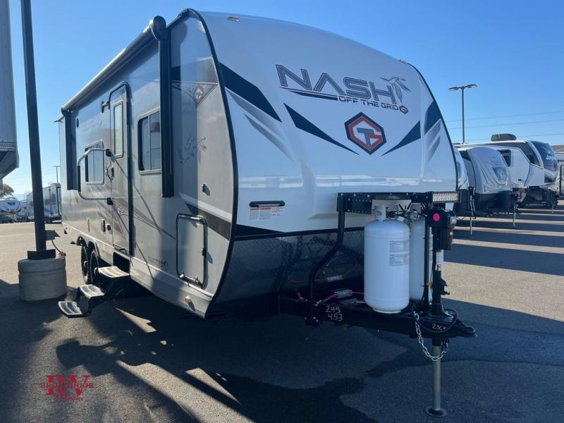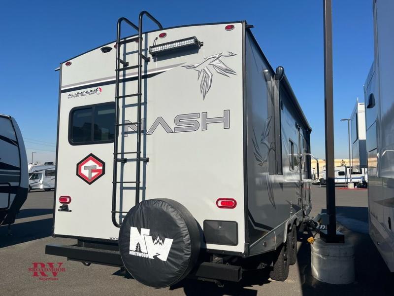 With any Nash travel trailer by Northwood, you can be sure you're getting a durable RV made to last thanks to the fully welded, thick-wall aluminum frame construction and Northwood built Ironhorse chassis. There are also thermal pane windows, Corona treated fiberglass, and all-conditions/four seasons insulation so you can camp year around! A pass through storage with an LED light will let you easily store camp gear and the SolX 4 - 400 Watt Solar Package will provide some off-grid capabilities. If you're wanting to go even more off-grid, just choose the optional Off The Grid Package! Head inside to enjoy the cathedral arched ceiling, along with slow rise night shades, a Northwood TruRest mattress, an AM/FM stereo with Bluetooth, and many more at-home comforts.