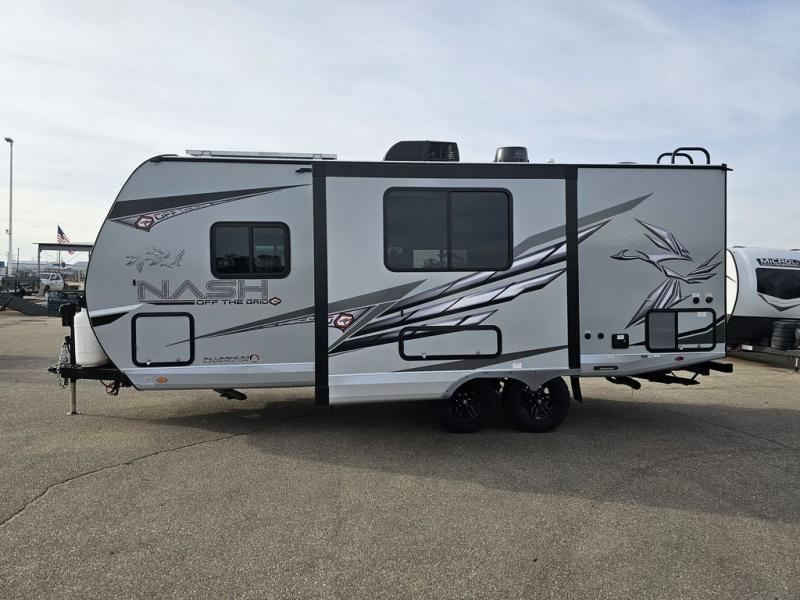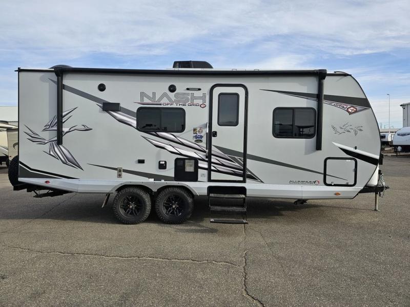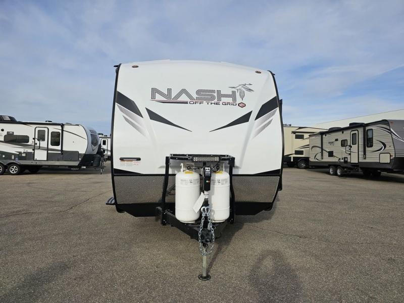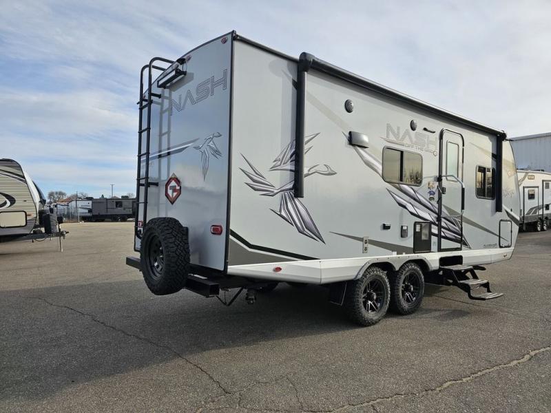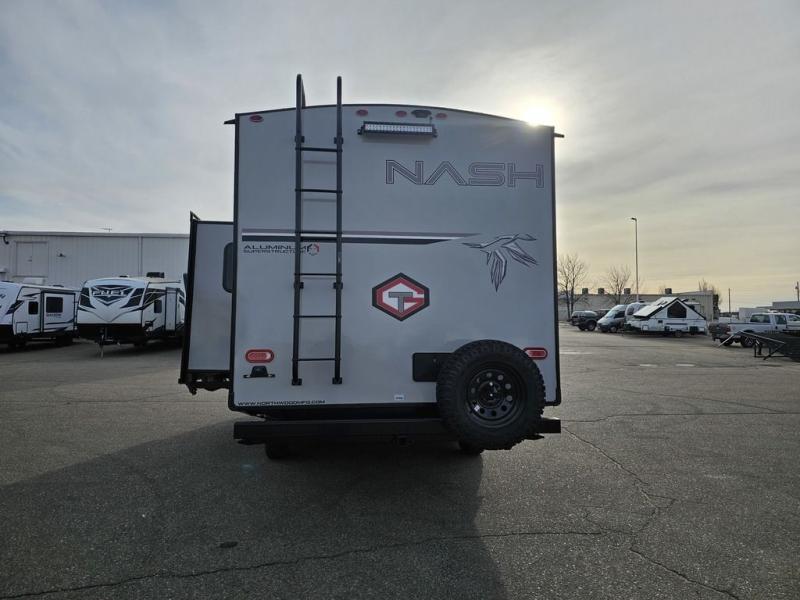 With any Nash travel trailer by Northwood, you can be sure you're getting a durable RV made to last thanks to the fully welded, thick-wall aluminum frame construction and Northwood built Ironhorse chassis. There are also thermal pane windows, Corona treated fiberglass, and all-conditions/four seasons insulation so you can camp year around! A pass through storage with an LED light will let you easily store camp gear and the SolX 4 - 400 Watt Solar Package will provide some off-grid capabilities. Head inside to enjoy the cathedral arched ceiling, along with slow rise night shades, a Northwood TruRest mattress, an AM/FM stereo with Bluetooth, and many more at-home comforts.