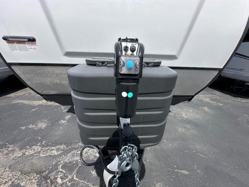 Load up the family and some friends to take off to the RV park for the weekend! You will have plenty of storage inside and outside, plus dual entry doors for a smooth flow of traffic. You will have a front bedroom with interior double entry giving you your own side of the bed and the kids will have double-size bunk beds. Any other guests you have can sleep on the U-shaped dinette and tri-fold sofa within the slide out when everyone is ready to call it a night. Be sure to take turns getting cleaned up in the full bathroom which has the second exterior entry door for convenience. And the cook will have a 10 cu. ft. 12V refrigerator and a second pantry for food storage.