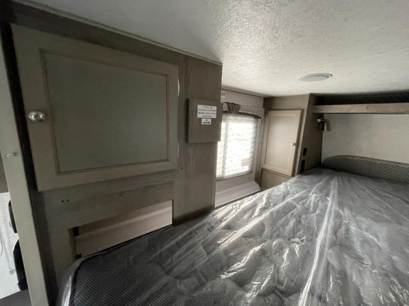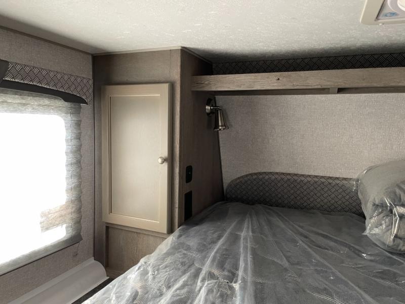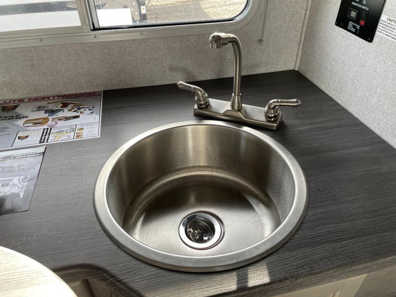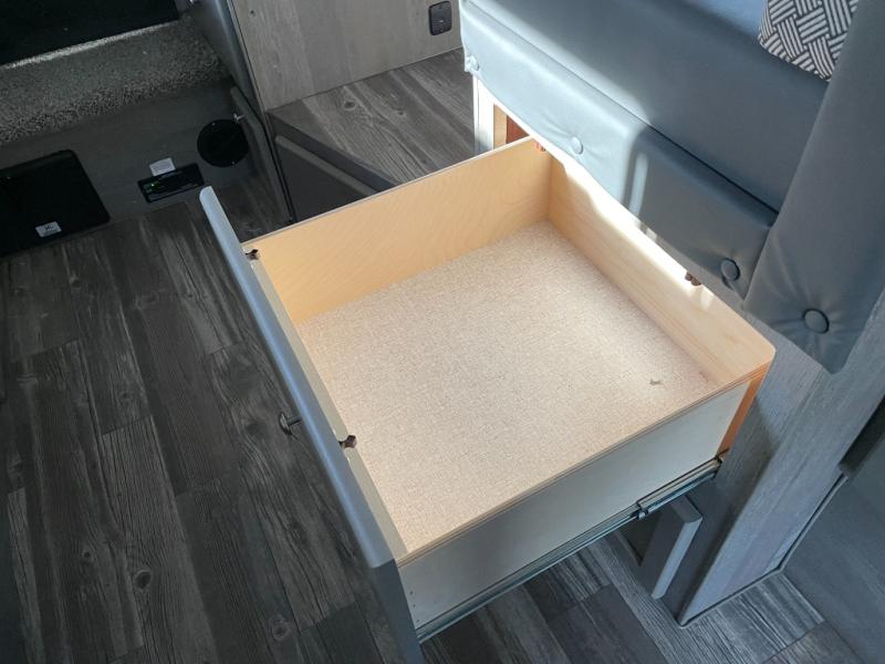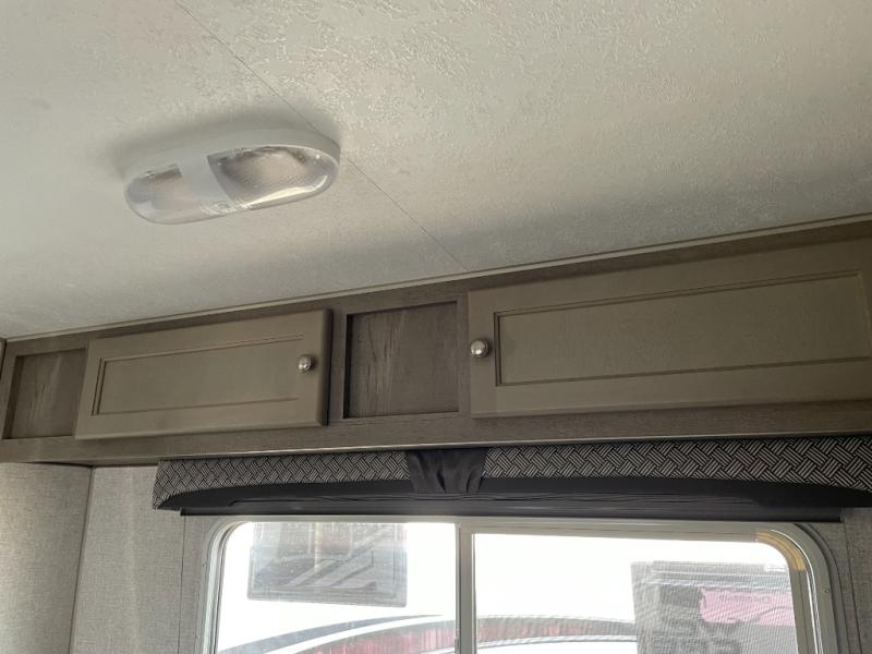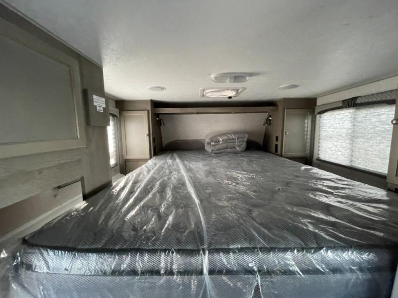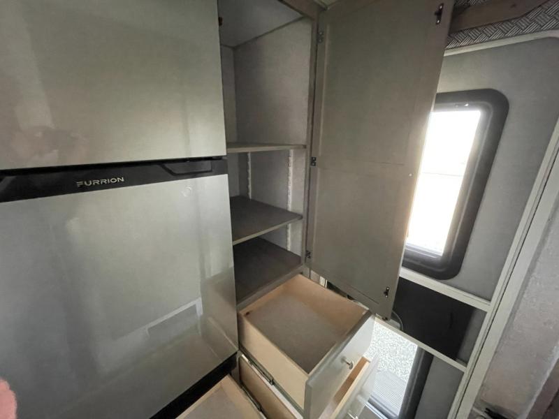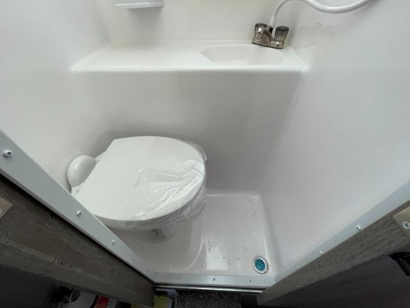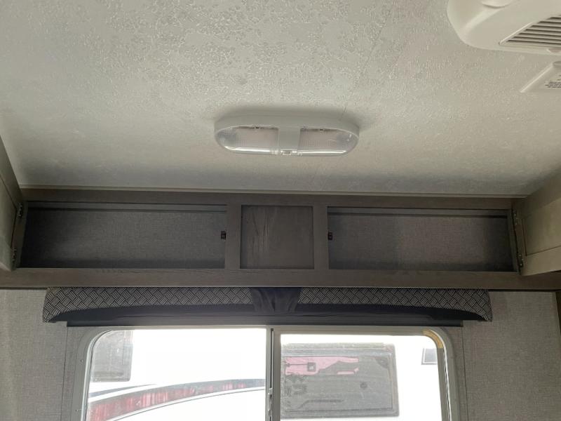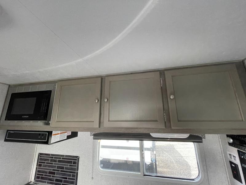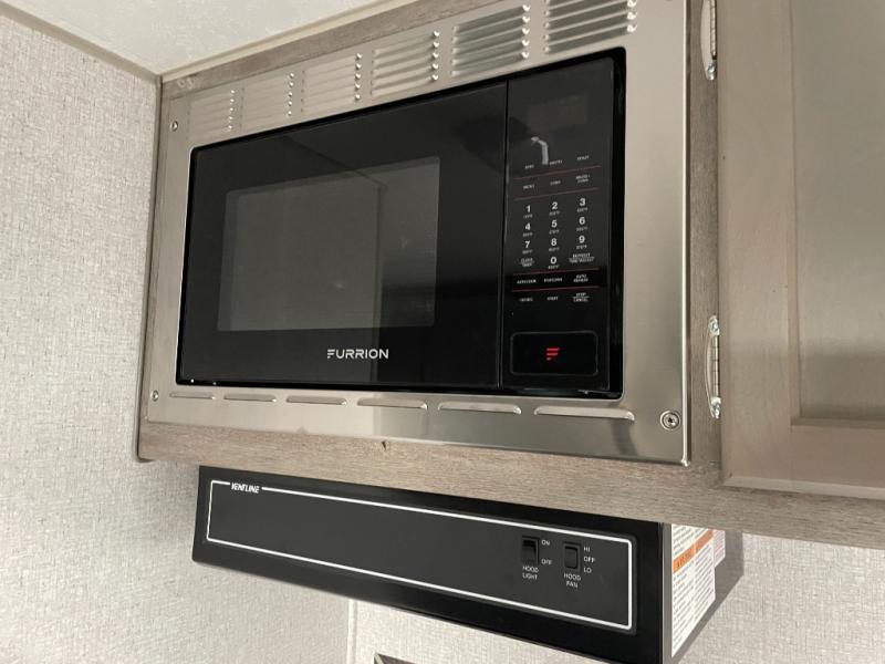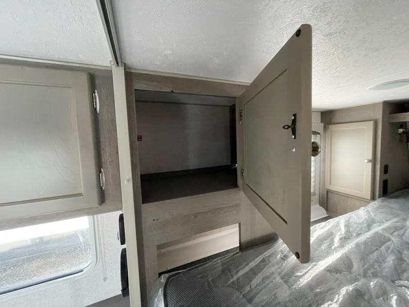 You'll have everything you need and more in this cozy truck camper for three to four. Once you arrive at the campground, you can put out the 7' 4" rear awning with LED lights, unload your bags, then head inside to make lunch on the three burner cooktop. There is also a residential-style microwave with an air fryer and an 8 cu. ft. 12V refrigerator for all your kitchen needs. A booth dinette provides a place to dine together and let a guest or two little ones sleep over. The front queen-size bed will be perfect for you, and there are three wardrobes around the bed to keep your things organized. And if you enjoy watching movies in bed, just choose the optional 24" 12V LED TV!