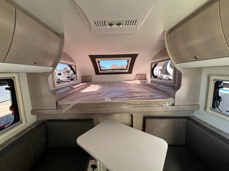 This Cirrus truck camper comes with a Froli sleep system which is a unique and innovative approach to a comfortable night of sleep. While you're sleeping on the bed, you can look through the stargazer window to appreciate the night sky. The dinette can easily be transformed into a second bed, and the sink, two-burner stove, and 4.6 cu. ft. 12V compressor refrigerator give you a place to prepare meals. This model also comes with an external LP hook-up, a Nautilus Water Management System, an exterior shower, and a dual battery compartment.