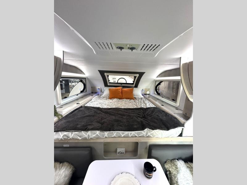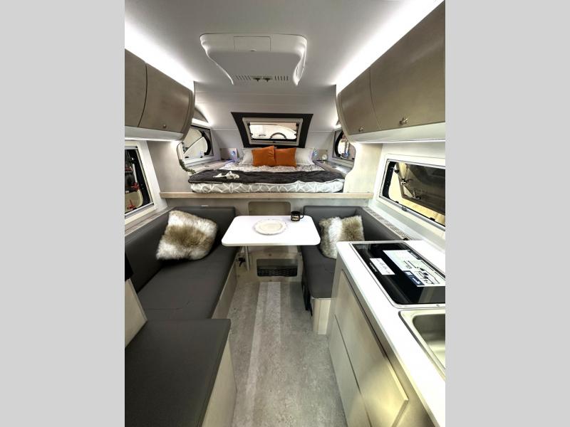 This Cirrus truck camper comes with a Froli sleep system which is a unique and innovative approach to a comfortable night of sleep. While you're sleeping on the bed, you can look through the stargazer window to appreciate the night sky. The dinette can easily be transformed into a second bed, and the sink, two-burner stove, and 4.6 cu. ft. 12V compressor refrigerator give you a place to prepare meals. This model also comes with an external LP hook-up, a Nautilus Water Management System, an exterior shower, and a dual battery compartment.