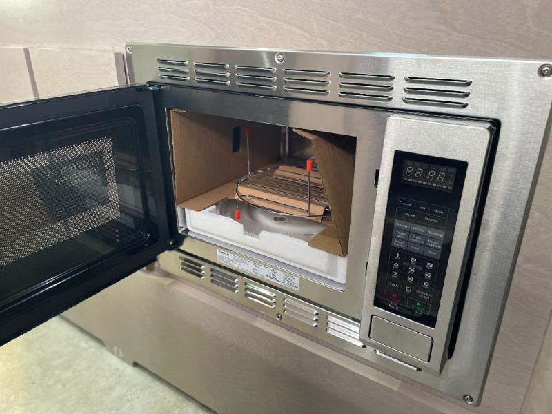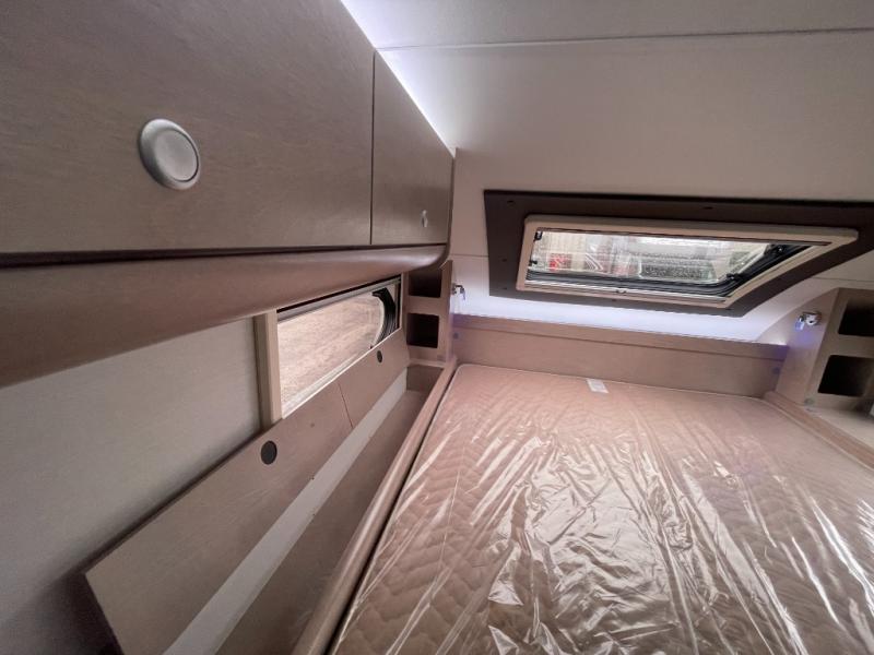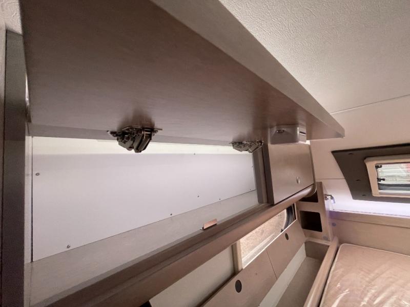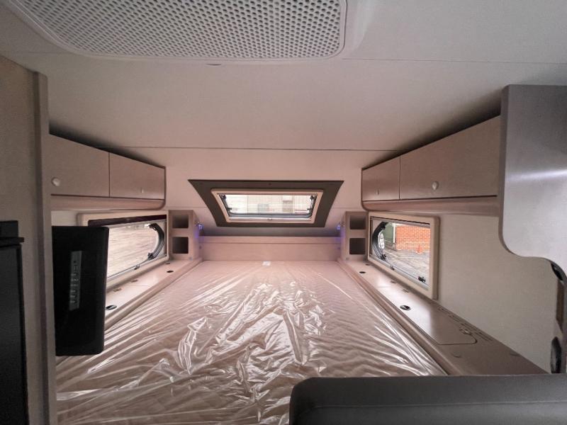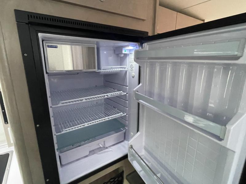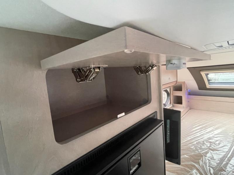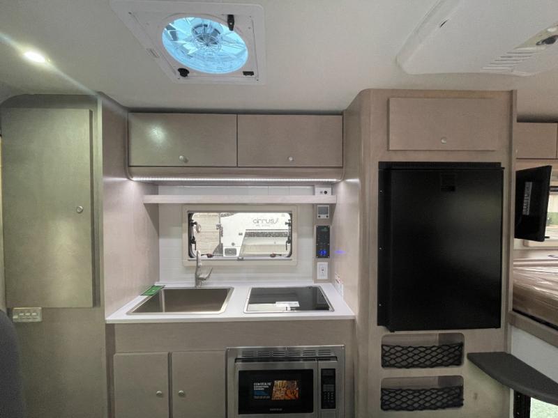 You will find a pass-thru window on this Cirrus truck camper. The exterior has a Maggie roof rack for bringing along extra gear, and there is a motorized 8' side awning to protect you while you're living life outside. The convection microwave/oven is going to make your meal prep easier and faster, and the air conditioning will keep this camper's interior at a desirable temperature even when it's hot outside. This model also comes with an HDTV dish and a great sleeping area with the Froli sleep system.