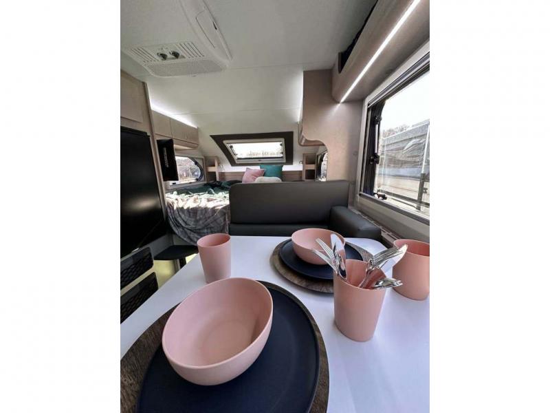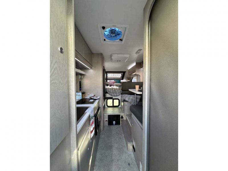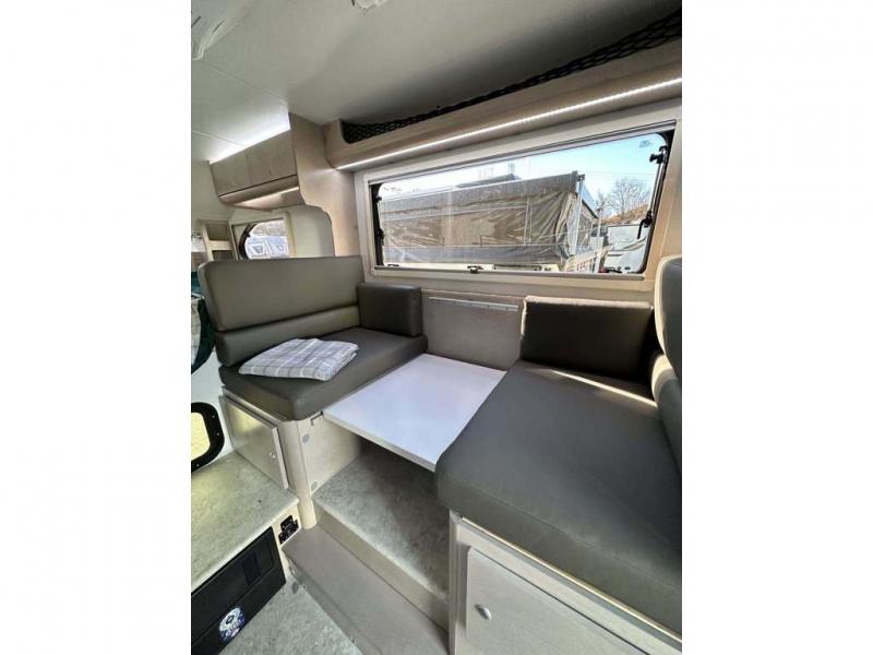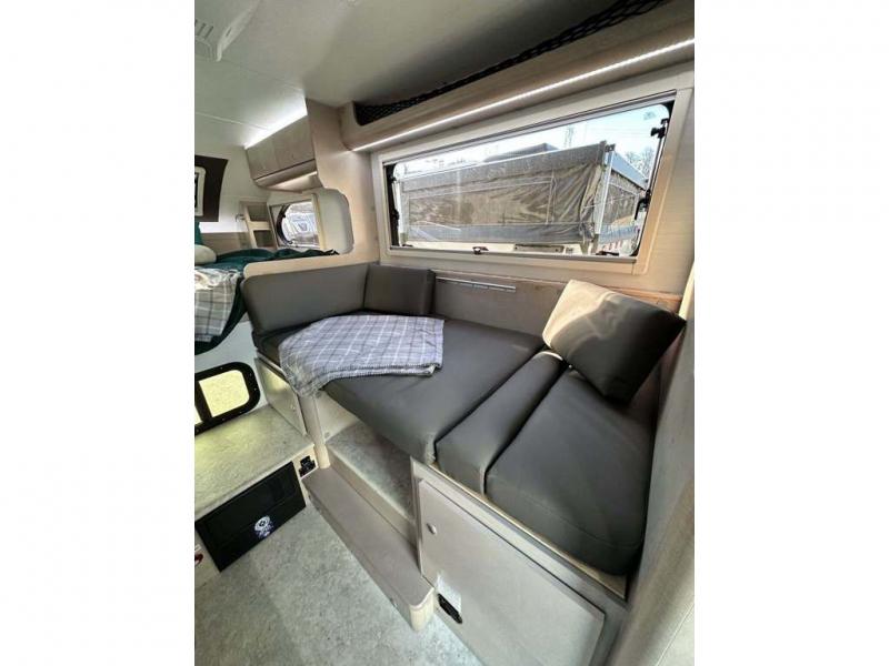 You will find a pass-thru window on this Cirrus truck camper. The exterior has a Maggie roof rack for bringing along extra gear, and there is a motorized 120" side awning to protect you while you're living life outside. The convection microwave/oven is going to make your meal prep easier and faster, and the air conditioning will keep this camper's interior at a desirable temperature even when it's hot outside. This model also comes with a Bluetooth media center with 19" TV and a great sleeping area with the Froli sleep system.