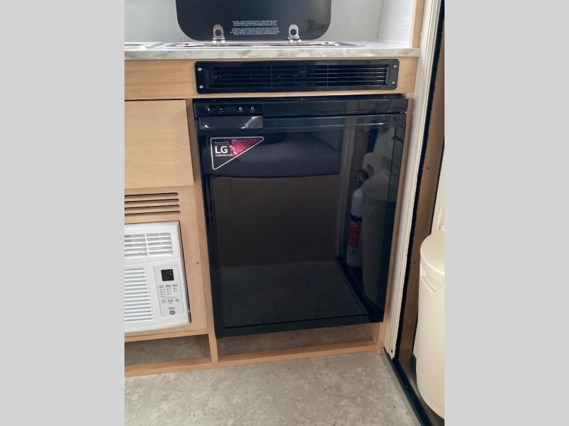 The TAB 320 LITE teardrop trailer by nuCamp RV offers a simple, more affordable, and more approachable way of camping. There is a molded underbelly shield, alloy wheels, aggressive off-road tires, plus Boondock molded fenders and a Boondock entry door handle and step. A front diamond plate storage tub will keep your camp gear secure, and a 180-watt solar panel will provide off-grid capabilities. This teardrop trailer features an LP furnace and an A/C unit, along with an LP water heater for added comfort. Inside, you will love the premium soft-close cabinetry, composite flooring, side porthole windows, and front window for great outdoor views.