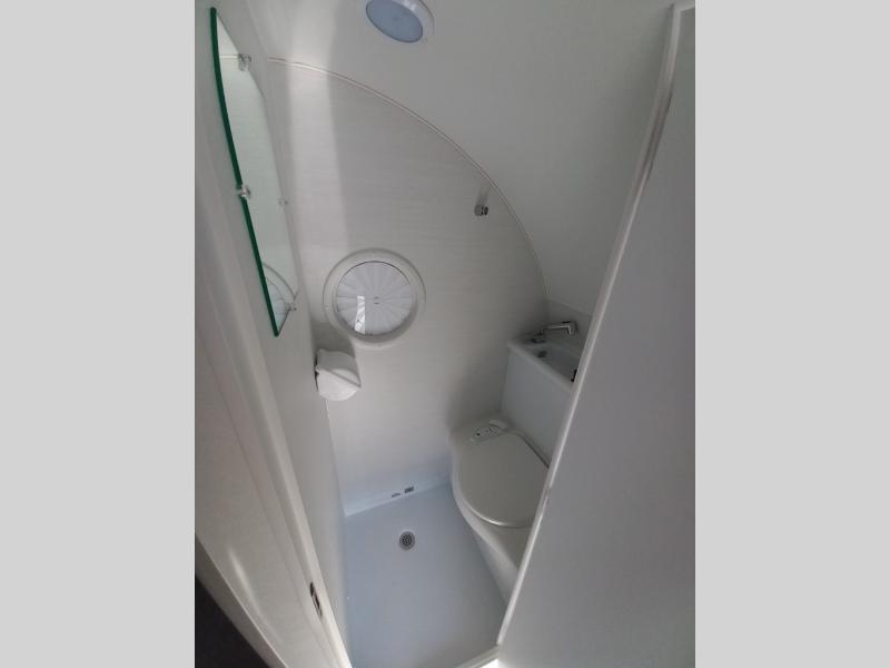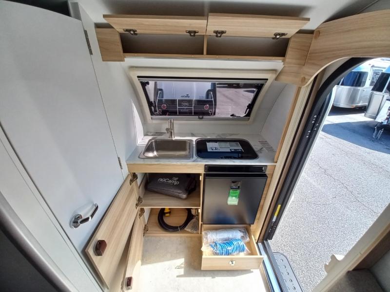 With any TAB 320 teardrop trailer by nüCamp RV, the interior offers deluxe Ohio-Amish cabinetry, soft close cabinetry, a custom screen/shade system, and a wet bath with a cassette toilet and built-in sink. The iconic teardrop design offers an easy-to-tow unit with amenities found in much bigger trailers. Some other highlights include the Alde central heat/hot water system, the central air conditioner, roof mounted solar, and the Nautilus water management system. The Boondock package provides features such as aggressive off-road tires, an aluminum utility platform, custom molded fenders, plus more!