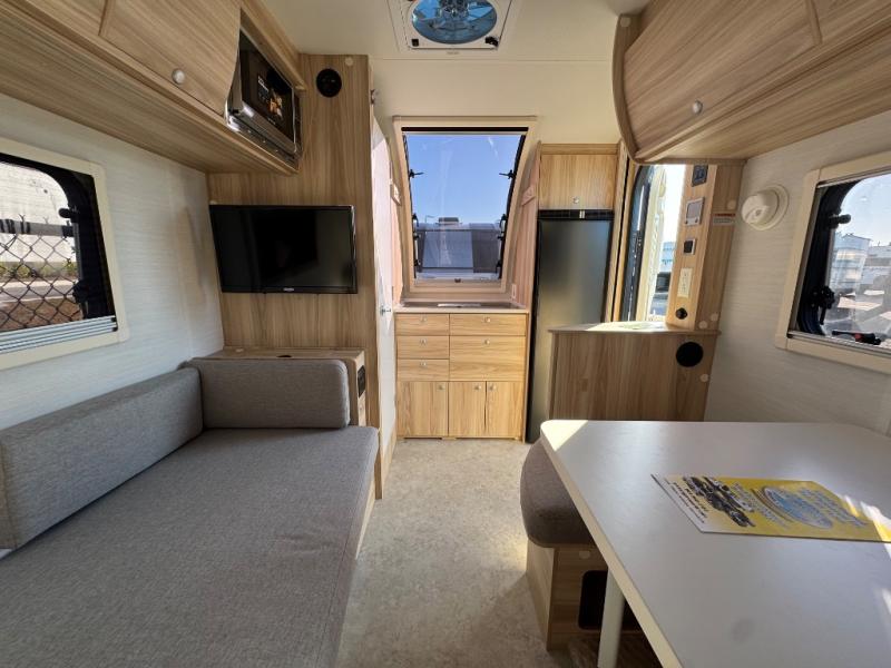 If you enjoy lightweight camping, this teardrop trailer is for you! Everything you need for trips to the lake will be right there with you, including a convenient wet bath with a cassette toilet. The twin bed set up gives you cozy sleeping space, and they can convert to a dinette on one side with extra seating on the other side! There are stargazer windows to give you great views of your surroundings, and the open floorplan will have you feeling right at home. A glass top sink and two burner cooktop combo will let you cook meals each day, and the 5.0 cu. ft. 12V compressor refrigerator will be perfect for perishables.