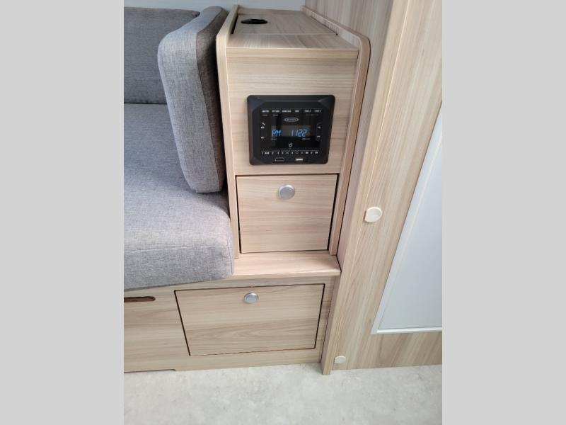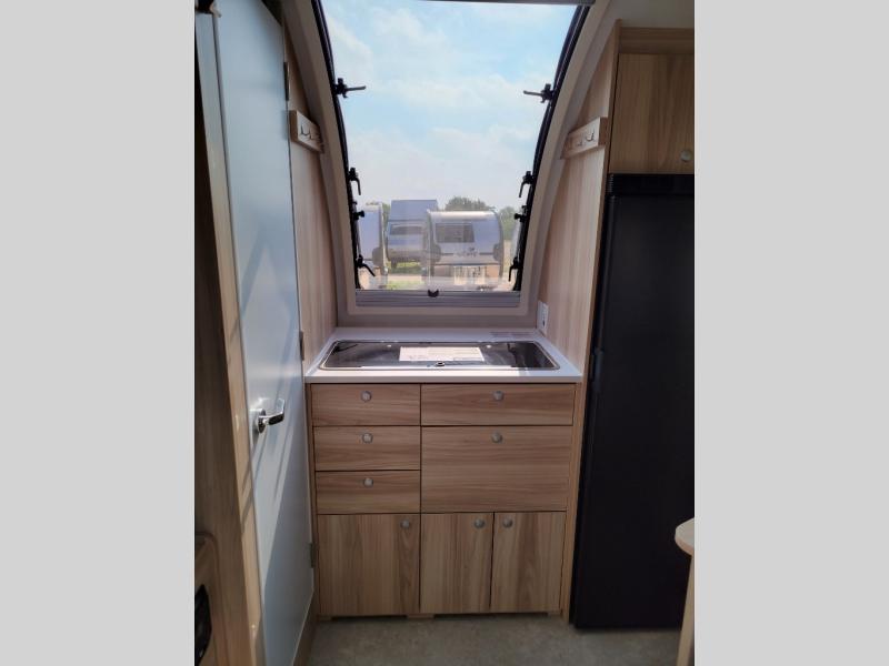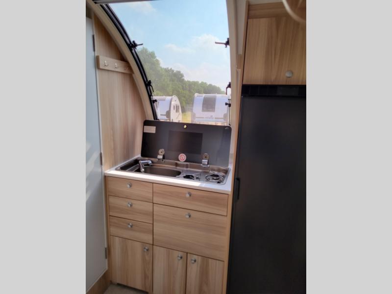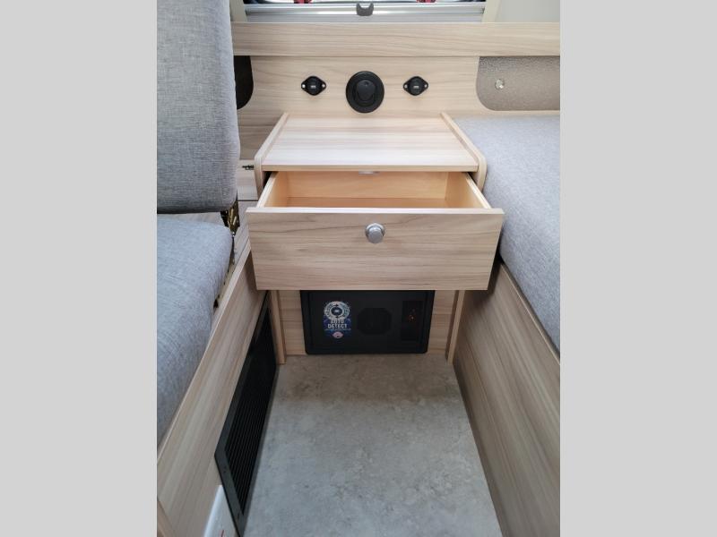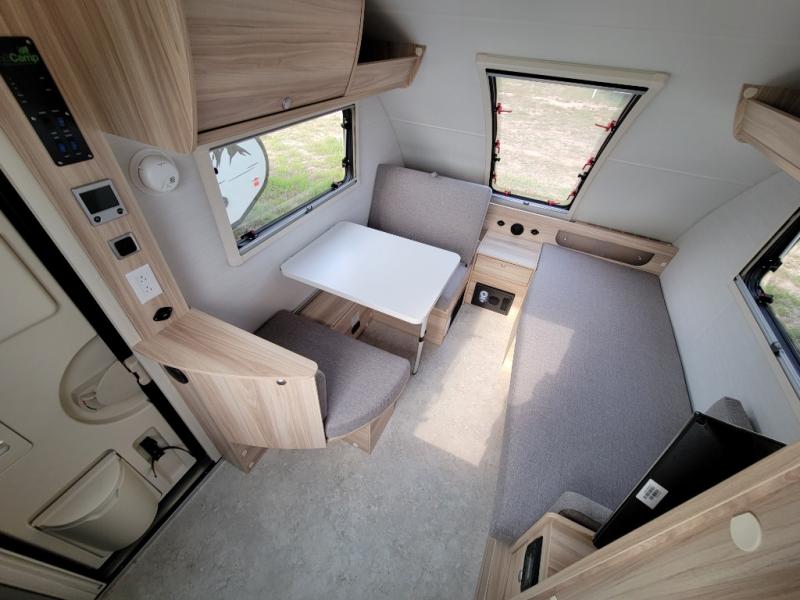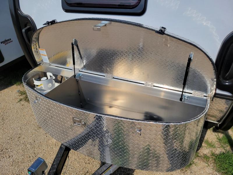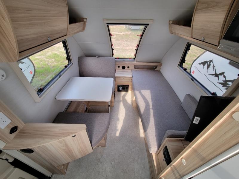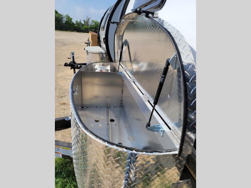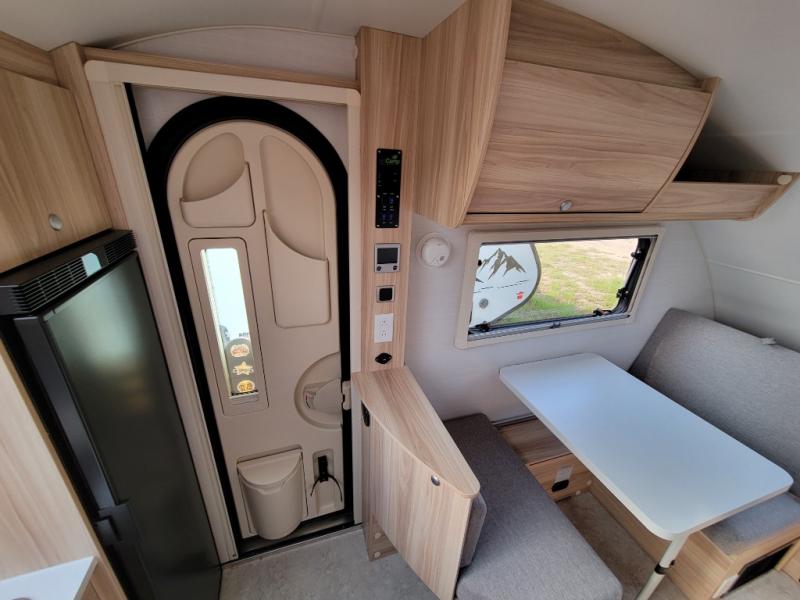 If you enjoy lightweight camping, this teardrop trailer is for you! Everything you need for trips to the lake will be right there with you, including a convenient wet bath with a cassette toilet. The twin bed set up gives you cozy sleeping space, and they can convert to a dinette on one side with extra seating on the other side! There are stargazer windows to give you great views of your surroundings, and the open floorplan will have you feeling right at home. A glass top sink and two burner cooktop combo will let you cook meals each day, and the 5.0 cu. ft. 12V compressor refrigerator will be perfect for perishables. If the optional Black Canyon upgrade is chosen, the tongue weight will be 386 lbs. and the gross dry weight will be 2,729 lbs. See dealer for more details!
