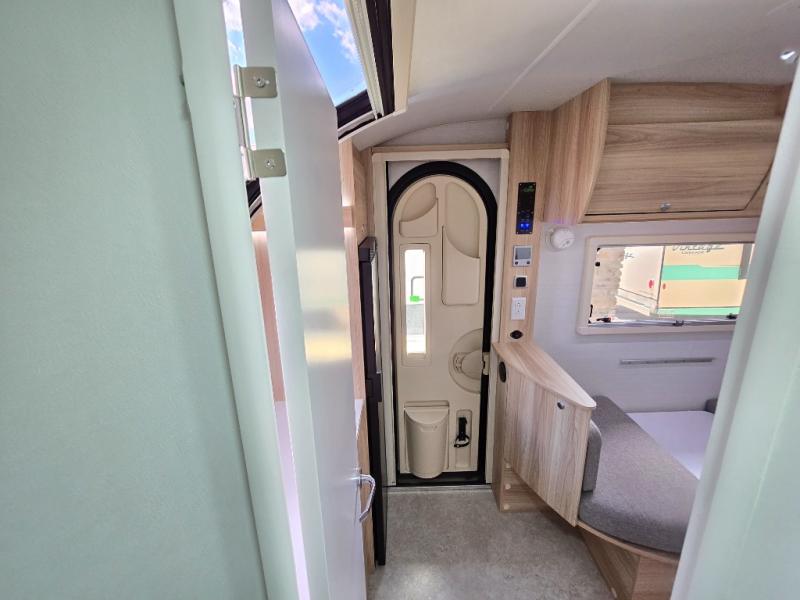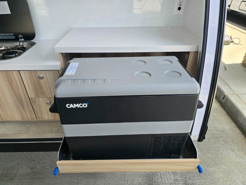 The TAB 360 CS teardrop trailer by nuCamp RV lets you take comfort with you wherever you roam! Since the kitchen has been moved outdoors with a hatch door, you'll enjoy a more spacious interior, while still experiencing an easy tow. Outside, there are aggressive off-road tires, a Nautilus water system with an external shower, plus an XL diamond plate storage tub. You'll love the look of the premium soft-close cabinetry, and the composite flooring will be easy to keep clean. There is also an Alde heating/hot water system, dual stargazer windows, and a power roof fan to name a few more conveniences. The Convenience Package includes a 190-watt solar panel and an external solar port, plus a 100Ah 12V lithium battery, an intelligent battery detection converter and a Bluetooth Smartshunt battery monitor. The optional Battle Born Lithium Battery Upgrade can be added that includes a 270Ah 12V lithium battery bank with internal heat and a 3,000-watt MultiPlus inverter/charger for even more power options!