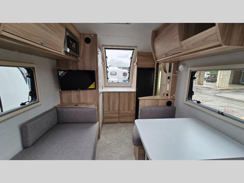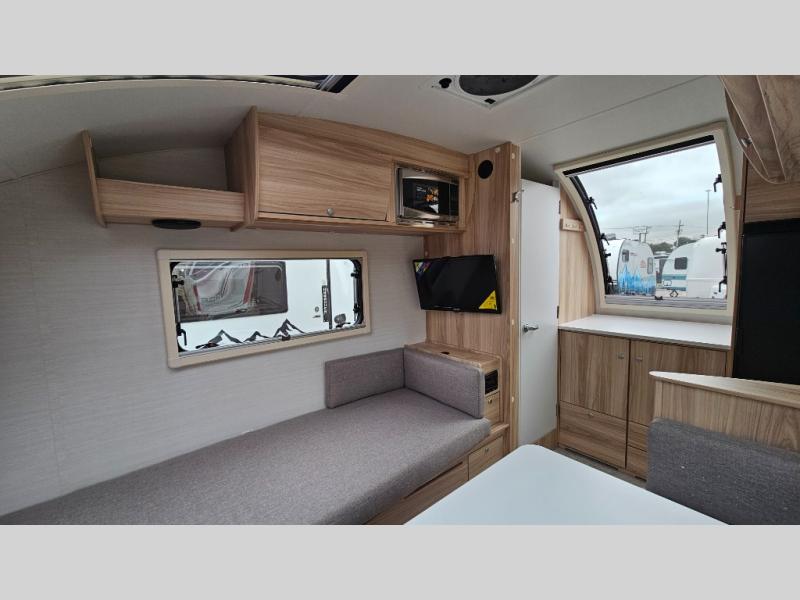 The TAB 360 CS teardrop trailer by nuCamp RV lets you take comfort with you wherever you roam! Since the kitchen has been moved outdoors with a hatch door, you'll enjoy a more spacious interior, while still experiencing an easy tow. Outside, there are aggressive off-road tires, a Nautilus water system with an external shower, plus an XL diamond plate storage tub. You'll love the look of the premium soft-close cabinetry, and the composite flooring will be easy to keep clean. There is also an Alde heating/hot water system, dual stargazer windows, and a power roof fan to name a few more conveniences. The Convenience Package includes a 190-watt solar panel and an external solar port, plus a 100Ah 12V lithium battery, an intelligent battery detection converter and a Bluetooth Smartshunt battery monitor. The optional Battle Born Lithium Battery Upgrade can be added that includes a 270Ah 12V lithium battery bank with internal heat and a 3,000-watt MultiPlus inverter/charger for even more power options!