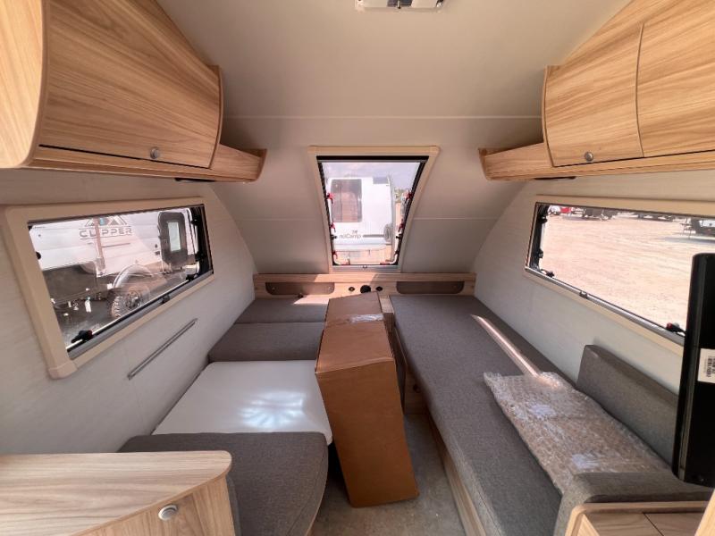 If you enjoy lightweight camping, this teardrop trailer is for you! Everything you need for trips to the lake will be right there with you, including a convenient wet bath with a cassette toilet. The twin bed set up gives you cozy sleeping space, and they can convert to a dinette on one side with extra seating on the other side! There are stargazer windows to give you great views of your surroundings, and the open floorplan will have you feeling right at home. A glass top sink and two burner cooktop combo will let you cook meals each day, and the 5.0 cu. ft. 12V compressor refrigerator will be perfect for perishables.