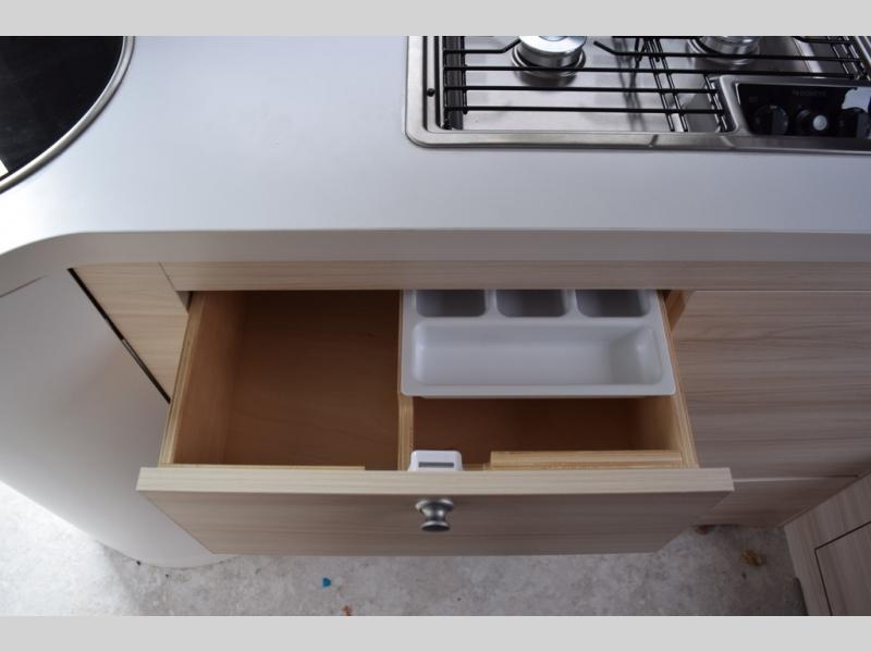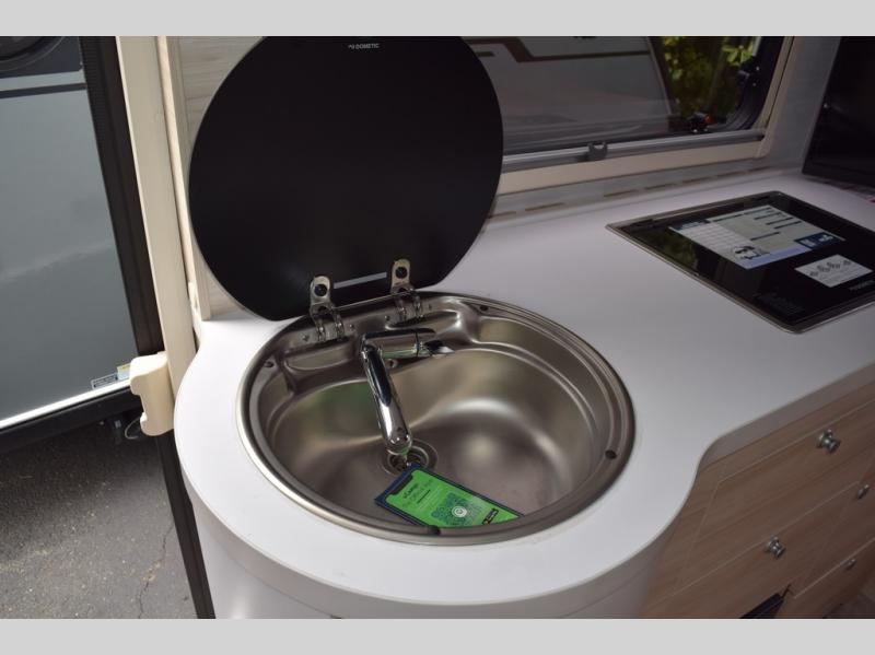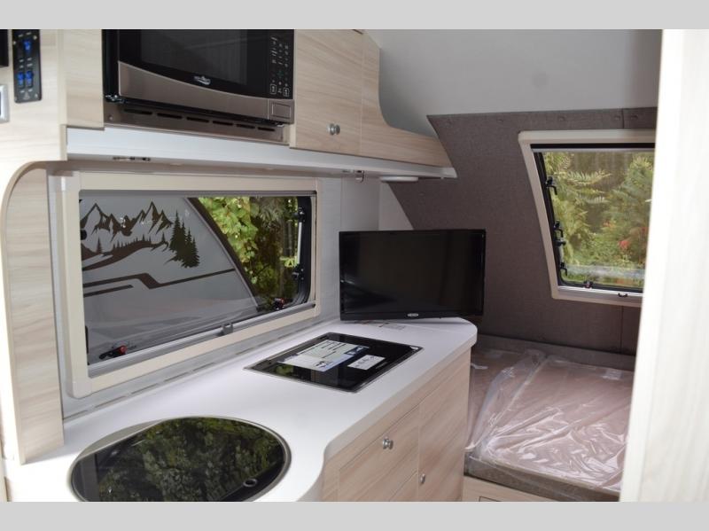 This teardrop trailer offers sleeping space for three with two sleeping areas; one up front and one in the rear. The dinette allows you to eat and relax during the day, and at night this space becomes sleeping space for one. The queen-size sleeping area is located on the opposite side with the wet bath in between for convenience for all. The galley kitchen will give the cook a place to make warm meals and store leftovers in the 4.6 cu. ft. 12V compressor refrigerator. Everyone can watch the 24" TV through the Bluetooth media center before bedtime, or in the morning as you all plan your next activity. And the Alde central heating/hot water system, as well as central air conditioning will keep you comfortable where ever you set up. If you enjoy more off-road type camping, consider the optional Boondock and Black Canyon package and Lithium battery upgrade which will allow you to go off-grid. The Lithium battery upgrade includes 400 Ah 12V lithium battery bank with internal heat and a 3,000 watt inverter/charger. Please note: The model specs. shown are for the classic TAB 400. With the Boondock optional package, the width will be 7' 8", height will be 8' 11", gross axle weight will be 3,900 lbs., dry tongue weight will be 399 lbs. and total gross dry weight will be 2,911 lbs. The Black Canyon optional package will have the same specs as the Boondock, but with a dry tongue weight of 385 lbs., and a total gross dry weight of 2,940 lbs.