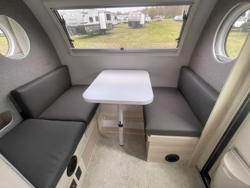 The TAB 400 by nuCamp RV is mighty in essentials and spacious for a teardrop trailer! There is a Froli sleep system, a spacious wet bath, a galley kitchen and plenty of storage plus a dinette. Inside you will enjoy the Bluetooth media center, premium soft-close cabinetry, and monster picture window. Some conveniences include a 310 watt solar panel allowing you to choose a spot off-grid to camp, and you can also choose the Black Canyon optional package available with an additional 310 watt solar panel, holding tank heaters, and under-glow lights. The optional Classic Package exchanges the wheels, tires, fenders, axle, and entry door handle for a more traditional touring style. The Black Canyon upgrade is not available for this package; see dealer for more details.