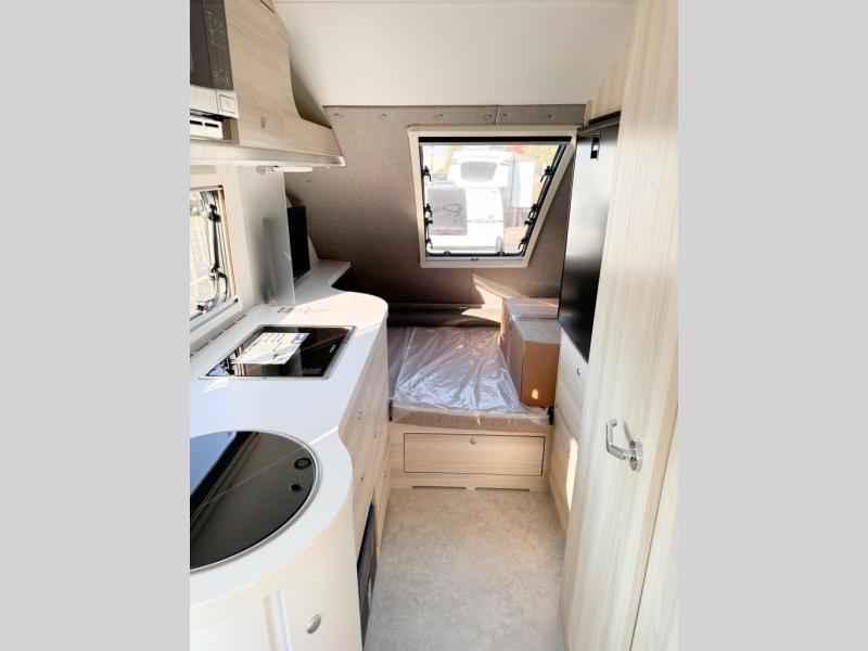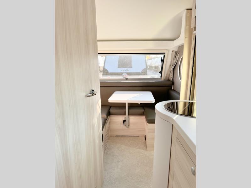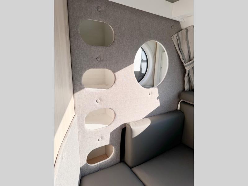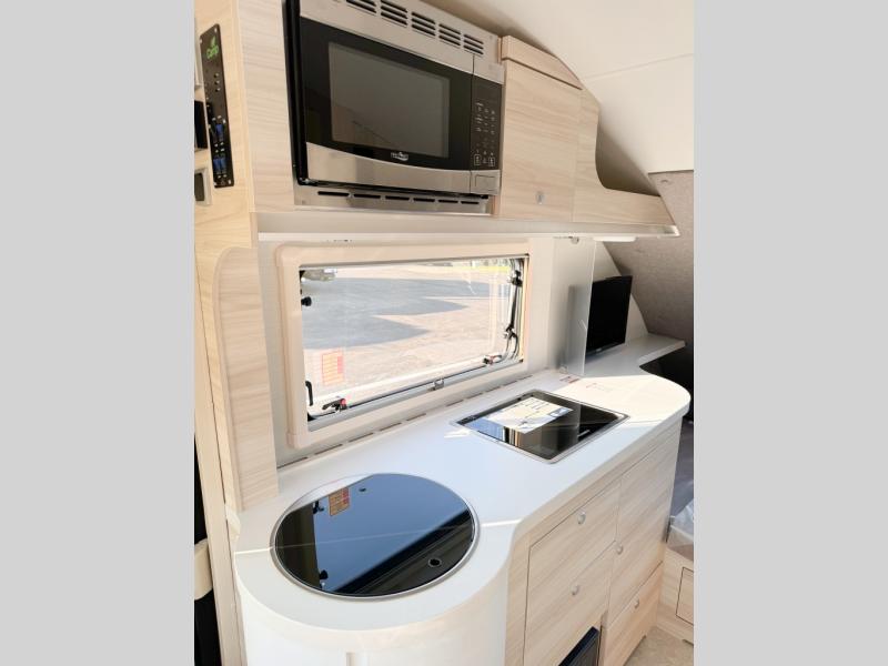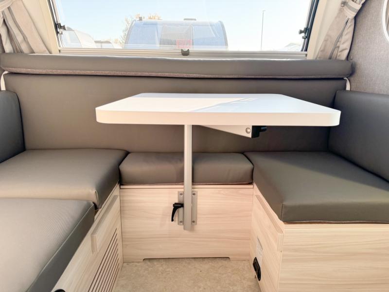 The TAB 400 by nuCamp RV is mighty in essentials and spacious for a teardrop trailer! There is a Froli sleep system, a spacious wet bath, a galley kitchen and plenty of storage plus a dinette. Inside you will enjoy the Bluetooth media center, premium soft-close cabinetry, and monster picture window. Some conveniences include a 310 watt solar panel allowing you to choose a spot off-grid to camp, and you can also choose the Boondock and Black Canyon optional packages available an additional 310 watt solar panel, holding tank heaters, and under-glow lights. Select a TAB 400 today to enjoy the unique shape of the teardrop, and the spacious interior for extended trips!