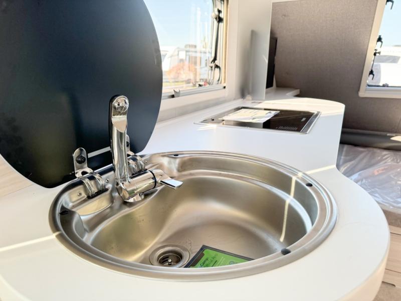 This teardrop trailer offers sleeping space for three with two sleeping areas; one up front and one in the rear. The dinette allows you to eat and relax during the day, and at night this space becomes sleeping space for one. And if you're needing even more sleeping space, you can choose the optional bunk floorplan! The queen-size sleeping area is located on the opposite side with the wet bath in between for convenience for all. The galley kitchen will give the cook a place to make warm meals and store leftovers in the 4.6 cu. ft. 12V compressor refrigerator. Everyone can watch the 24" TV through the Bluetooth media center before bedtime, or in the morning as you all plan your next activity. And the Alde central heating/hot water system, as well as central air conditioning will keep you comfortable where ever you set up. If you enjoy more off-road type camping, consider the optional Boondock and Black Canyon package and Lithium battery upgrade which will allow you to go off-grid. The Lithium battery upgrade includes 400 Ah 12V lithium battery bank with internal heat and a 3,000 watt inverter/charger. Please note: The model specs. shown are for the classic TAB 400. With the Boondock optional package, the width will be 7' 8", height will be 8' 11", gross axle weight will be 3,900 lbs., dry tongue weight will be 362 lbs. and total gross dry weight will be 2,936 lbs. The Black Canyon optional package will have the same specs as the Boondock, but with a dry tongue weight of 380 lbs., and a total gross dry weight of 2,946 lbs.