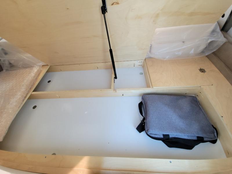 When you are looking to upgrade from a tent, this TAG XL might be your solution to outdoor fun with inside sleeping arrangements for two and an outdoor kitchen! This 20th Anniversary limited edition features exclusive sidewall color and anniversary graphics, premium anniversary interior details, and the Boondock Black Canyon upgrade included! This upgrade features an additional 120-watt solar panel, a holding tank heater, underglow lights, and more! You can enter from either side of this camper to enjoy your own queen-size bed as you look at the stars each night through the large front stargazer window. The interior also offers an air conditioner, under-bed storage, and cargo pouches for your belongings.