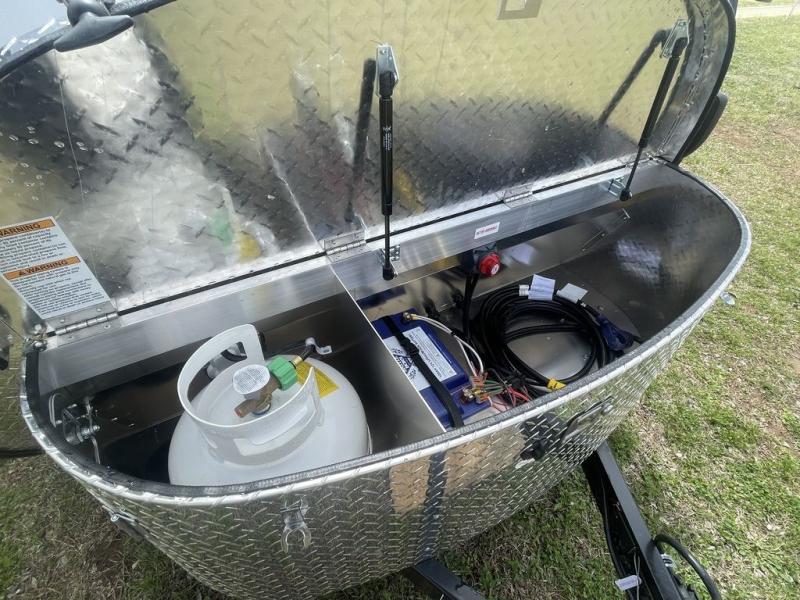 With any nuCamp RV TAG teardrop trailer, you can bring some of the comforts of home with you as you easily tow this lightweight trailer to the campgrounds. The outdoor kitchen includes a stainless steel sink and two-burner stove so you won't have to cook over a campfire each day. Inside, you'll find a composite floor, deluxe Amish cabinetry, sleeping accommodations, and a power roof fan to keep you comfortable. You will also appreciate the Convenience Package that comes with a 180-watt solar panel, a portable Bluetooth speaker, a 100 Ah 12-volt Lithium battery, and more!