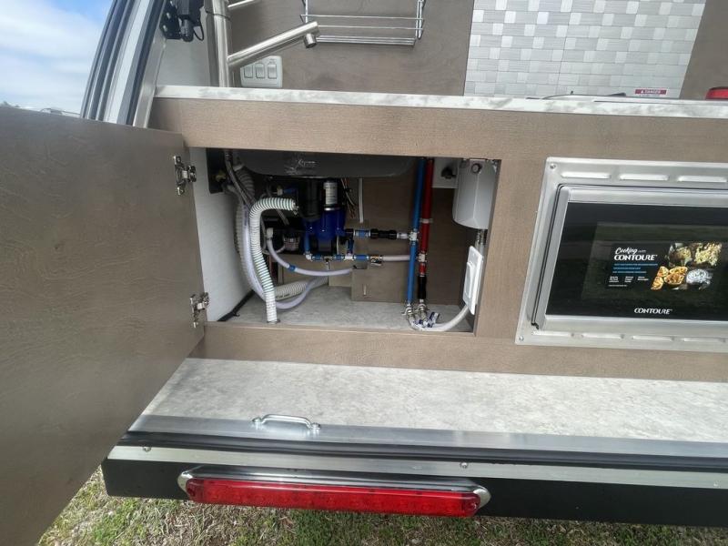 When you are looking to upgrade from a tent, this TAG XL Boondock might be your solution to outdoor fun with inside sleeping arrangements for two and an outdoor kitchen! You can enter from either side to enjoy your own queen-size bed as you look at the stars each night through the large front stargazer window. The interior also offers an air conditioner, under-bed storage, and cargo pouches for your belongings. The optional Black Canyon upgrade is available with this model that comes with an additional 120W solar panel, a water heater, holding tank heaters, under-glow lights, and a tri-fold multifunction mattress. Please note: the model specs on this unit represent the TAG XL Boondock model. If the optional Black Canyon upgrade is chosen, the tongue weight will be 194 lbs. and the gross dry weight will be 1,655 lbs. See dealer for more details!