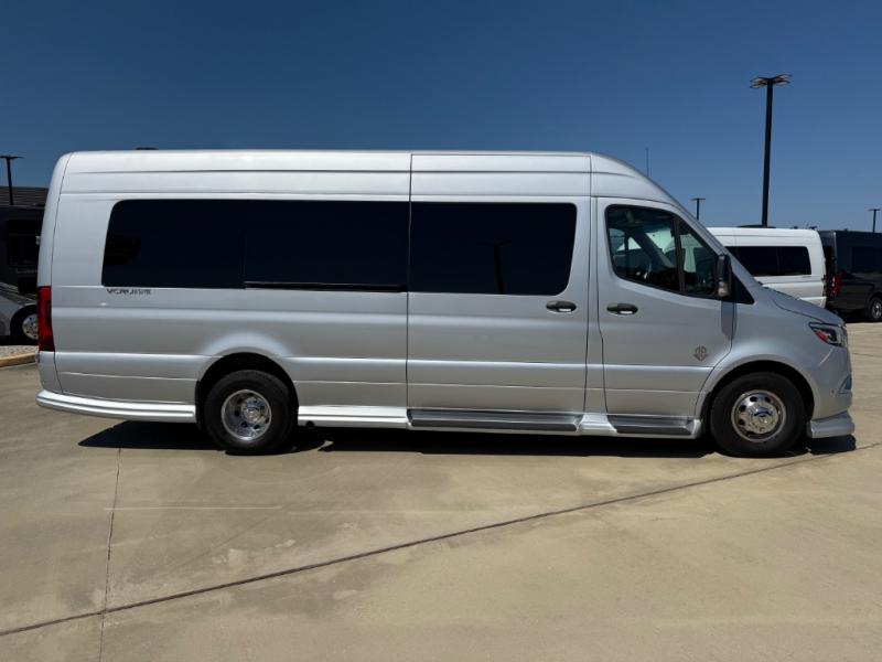 With any V-Cruise Class B diesel motorhome by OGV Luxury Coach, you will find high-quality and style at every turn. These Class B conversion vans feature color match bumpers and side moldings, a 5,000 lb. towing capacity, and an exterior utility bay with 30 Amp shore power, dual 110V outlets, an outside shower, plus tank fill and rinse for added convenience. The driver will love having a rear view camera for easy maneuvering, along with active brake assist, crosswind assist, and headlight assist. You'll love the interior of the V-Cruise with its handmade woodwork and satin finish, carpeted floor mats throughout the cabin, custom seating with double needle stitching, and more luxurious features. There is also an integrated touchscreen control system, plus a 100 Ah lithium auxiliary house battery and 2,000 watt inverter to keep you powered up. And each model is available with AWD, which will be perfect if you plan to travel tougher terrain; see dealer for more details!