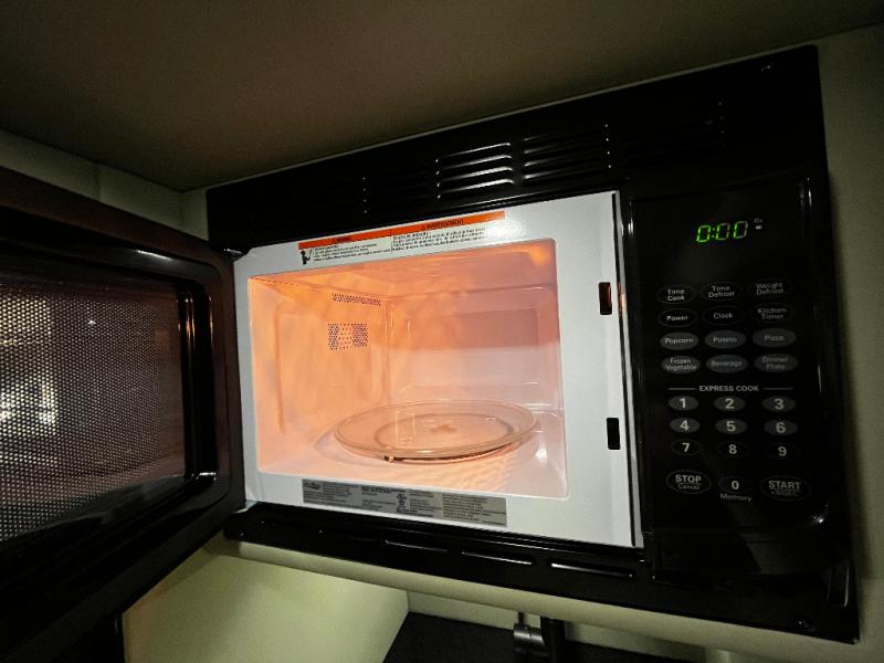 This coach will seat 10 passengers who are ready for fun day trips! The opposing sofas/foldout bed will provide sleeping space for two once you drop your tag-alongs off, and the rear toilet is sure to come in handy for nighttime restroom breaks. After you've cleaned up using the campground's facilities, you can grab a cold drink from the 3.75 u. ft. 12V refrigerator and make instant oatmeal in the microwave oven. Two of the captain's chairs come with power footrests, and three include a writing table if guests need to get some work done while you travel.